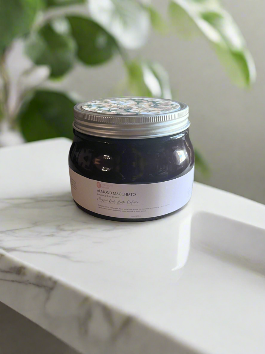 Ingredients: Shea Butter, Mango Butter, Sunflower Oil, Sweet Almond Oil, Olive Oil, Glycerin (Vegetable), Jojoba Oil, Coffee Oil, Arrowroot Powder and Phthalate-Free fragrance.
