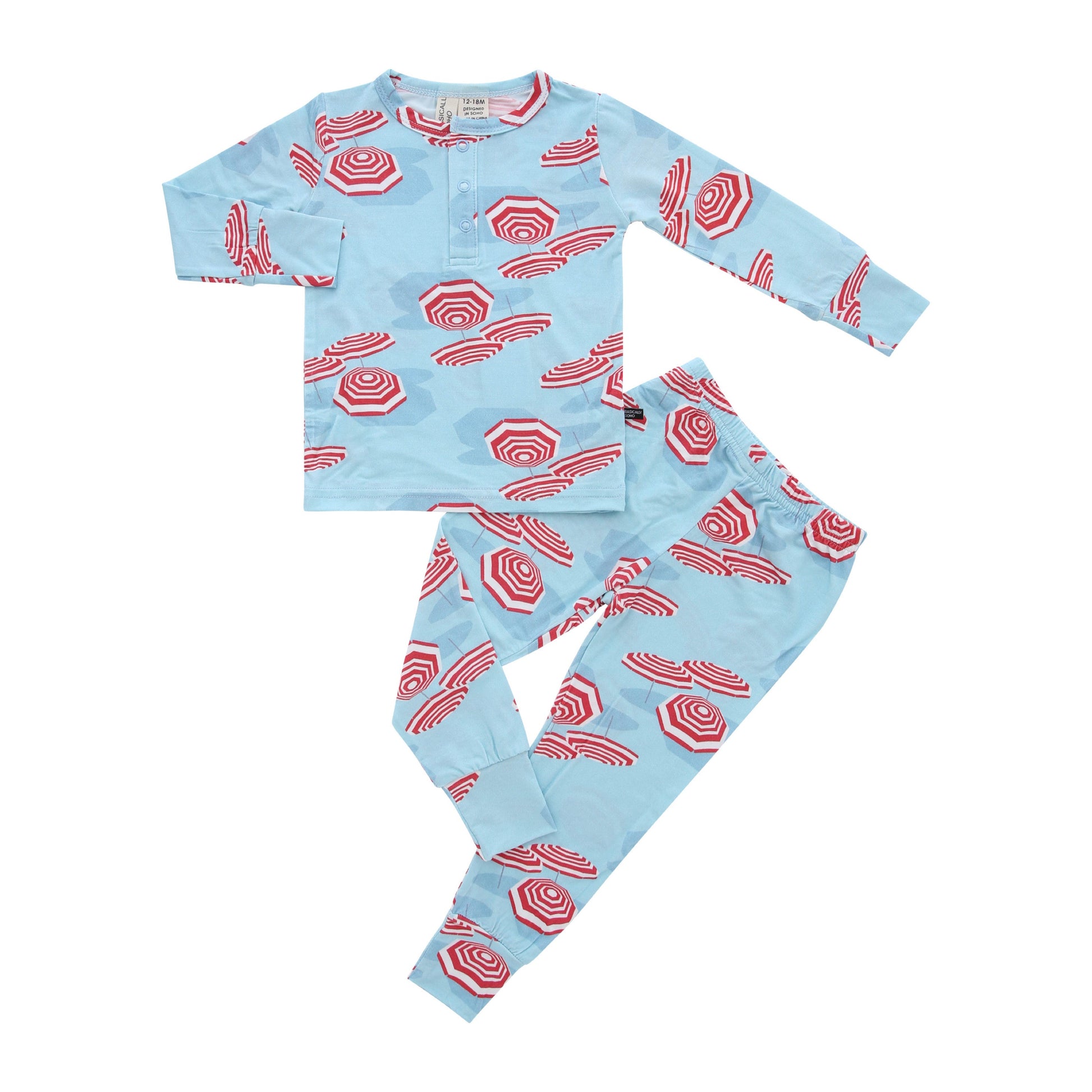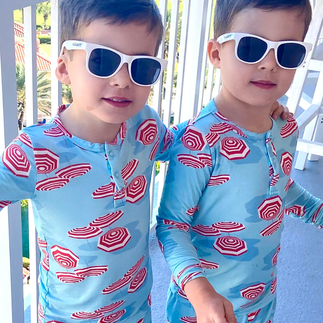 Upgrade your toddler's sleepwear with our super soft bamboo two-piece set! Our Beach Club Coral Surf Blue pajama set is inspired by the iconic beach umbrellas of the Amalfi Coast of Italy with its bright blue and coral beach umbrella print. This unisex color combination is perfect for the Italy/beach lover in your life! Our top selling birthday gift, give the gift of a good night's sleep!