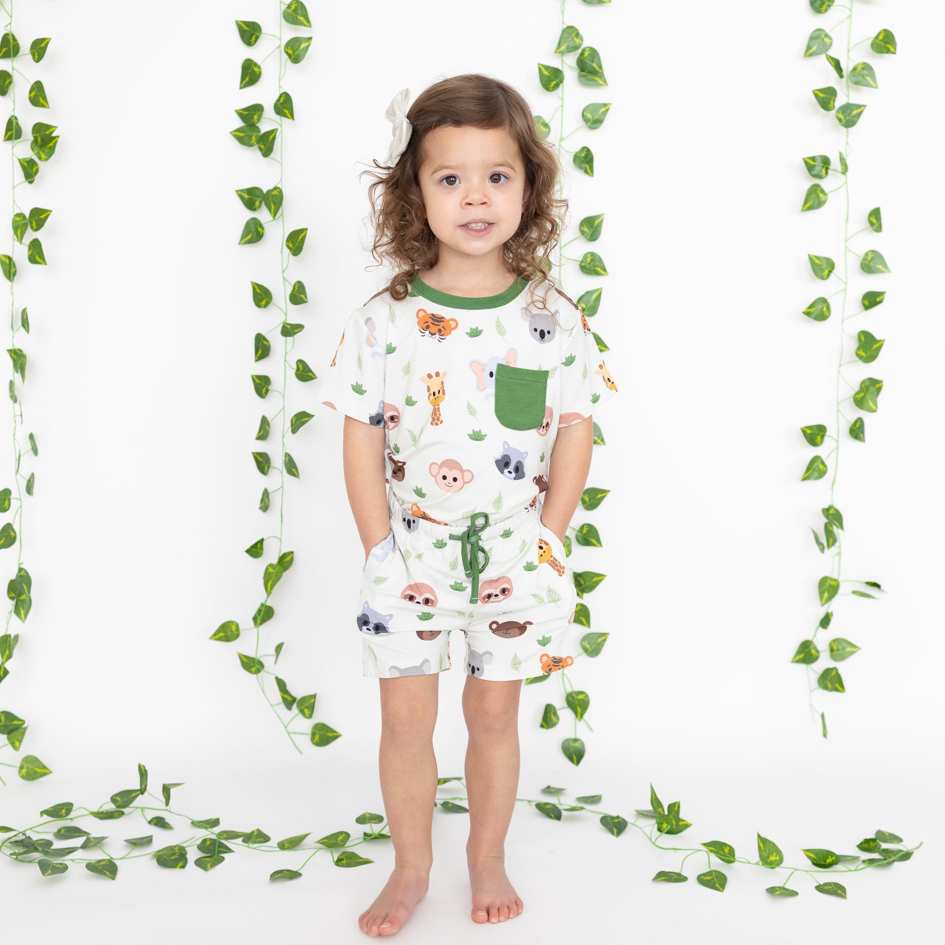 Indulge your little ones in the comfiest toddler sets they'll adore wearing! Our new drawstring shorts boast a soft and stretchy waistband, & feature 2 pockets and a functional drawstring. Our oversized daywear tee features a round hem perfect for a stylish tuck or let it hang for a loose fit.Ā