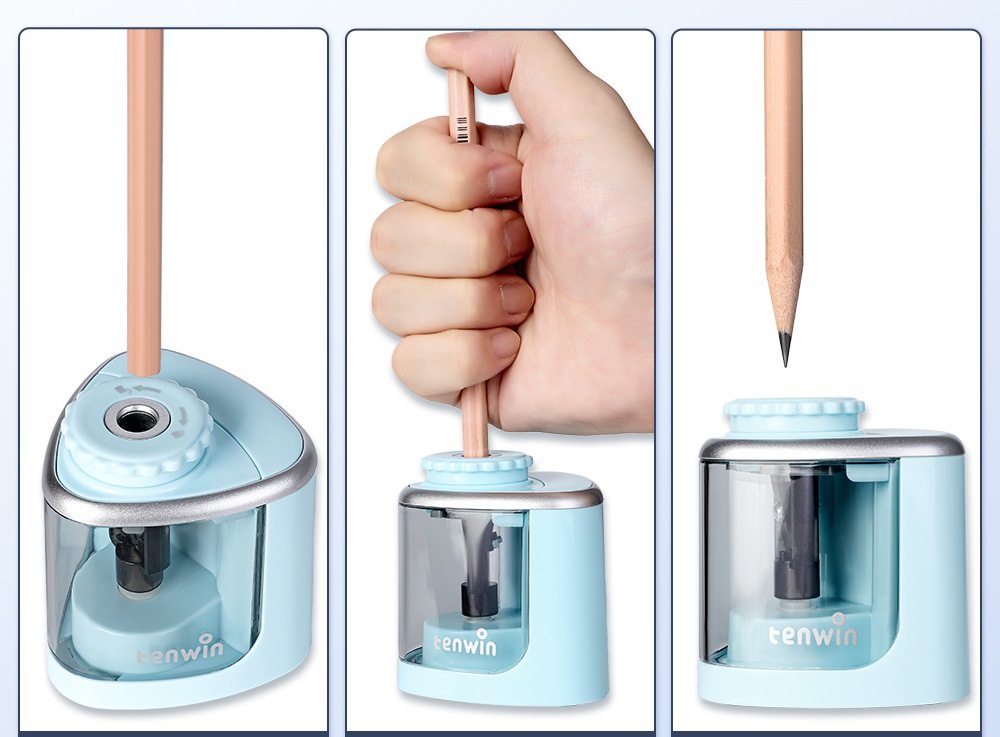 Electric Operation: Effortlessly sharpens pencils with automatic electric power, eliminating manual effort.