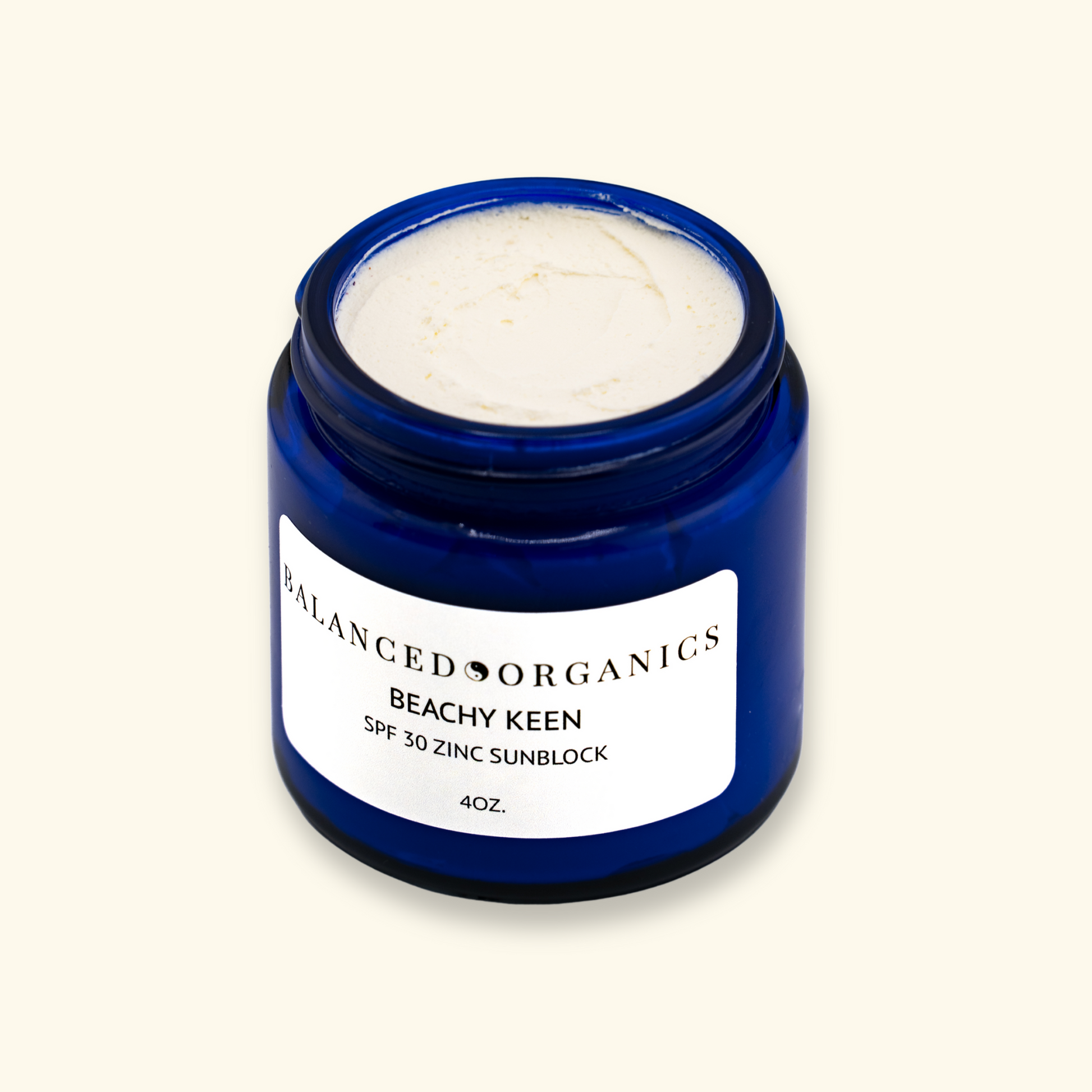 Savor the sun with our new reef-safe tallow based zinc sunblock!  Made with a proprietary blend of butters that help moisturize, soothe, nourish the skin while protecting from overexposure to the sun.  Not only do these butters contain low levels of natural SPF themselves, but also they maintain the ability to protect from sun damage with the natural salicylic acid and antioxidants found in them. This sunblock has a light beachy scent created by non-phototoxic essential oils (oils that are safe for sun exposure).