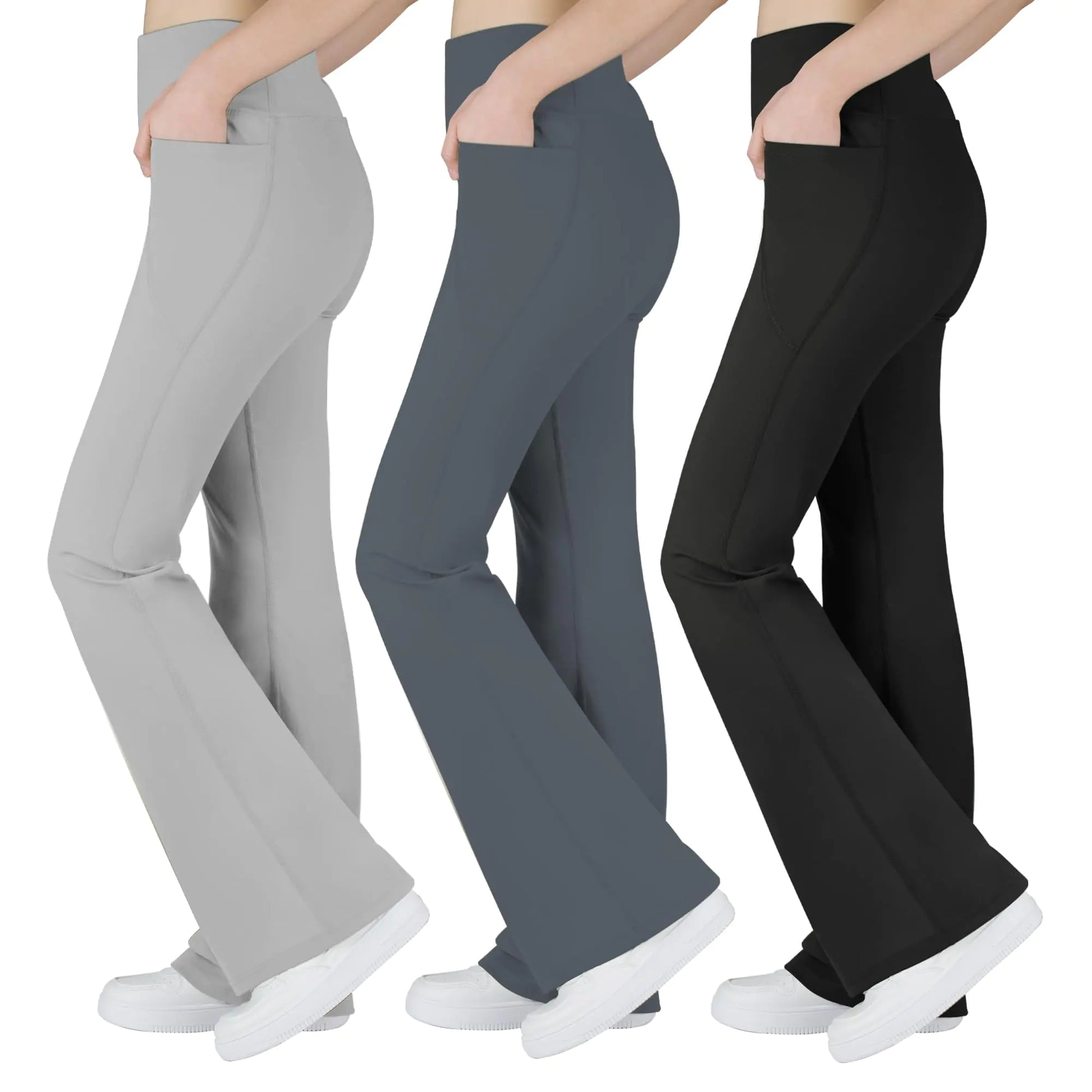 BIG ELEPHANT Girls Flare Leggings with Pockets Kids Bootcut Yoga Pants High Waisted Bell Bottoms for Dance - # GIAA23410027