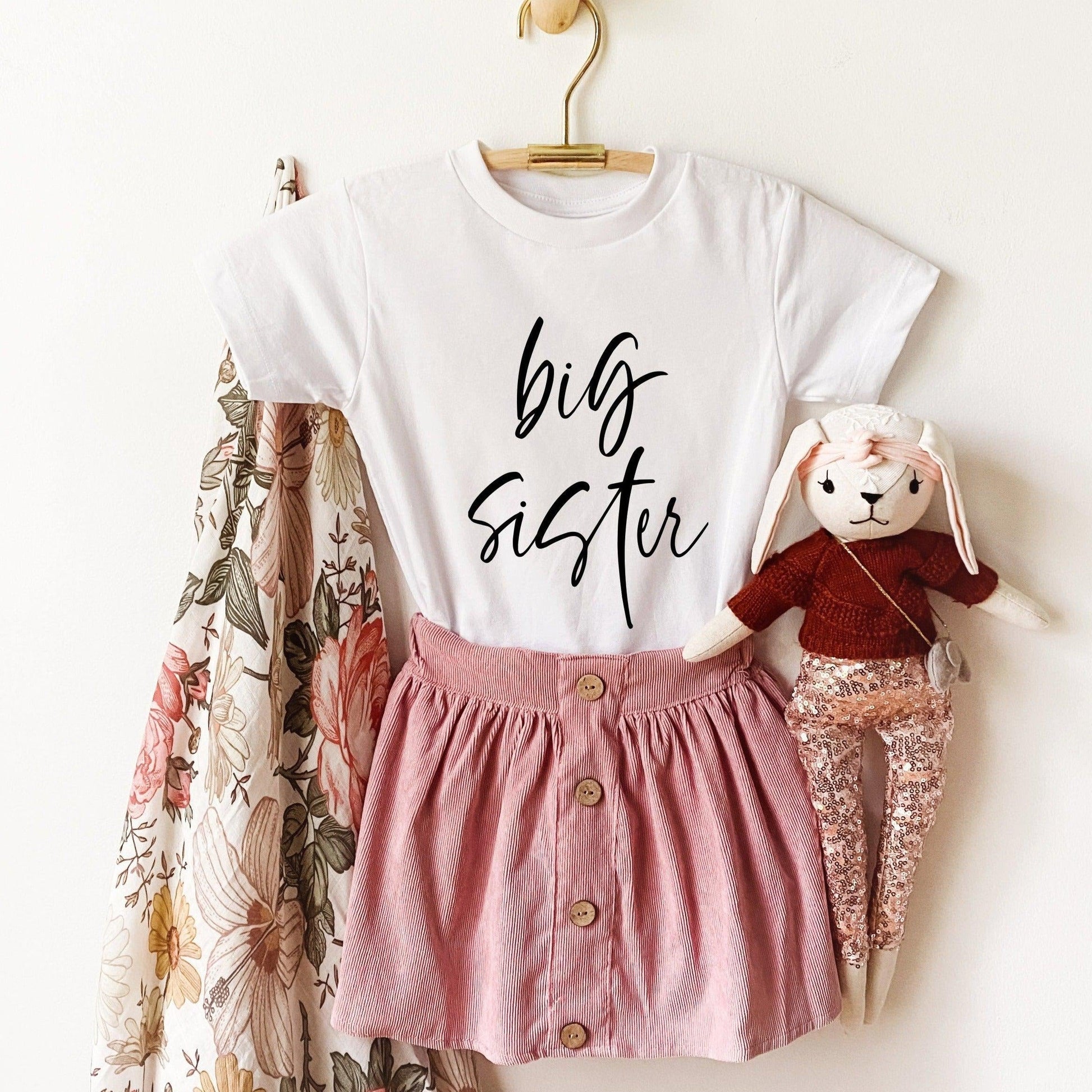Big Sister Baby And Toddler Big sis Pregnancy Announcement T Shirt (Cursive 2)