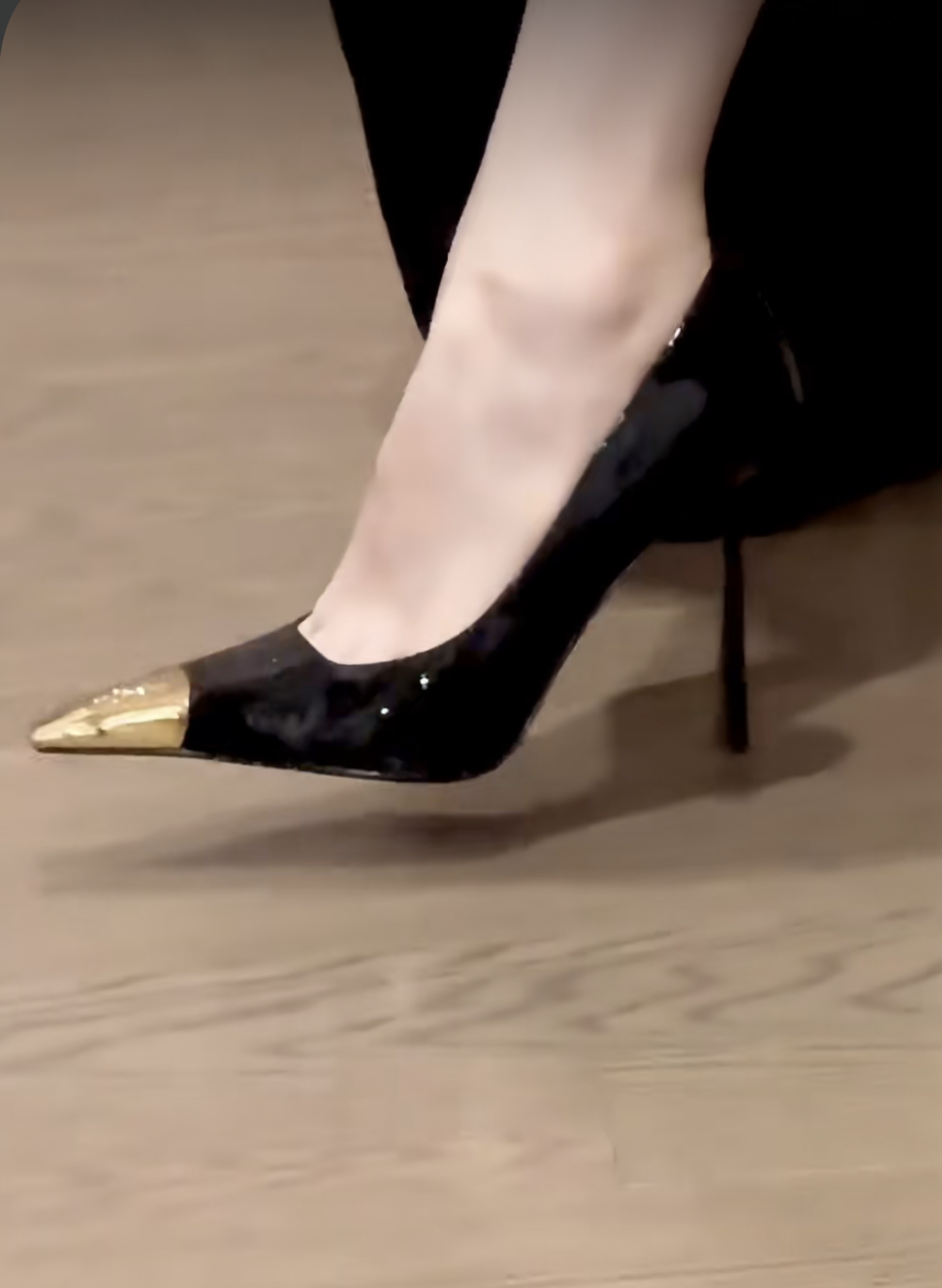 Elegant Design: Features a sleek black patent leather finish with a stylish metal toe detail for a sophisticated look.