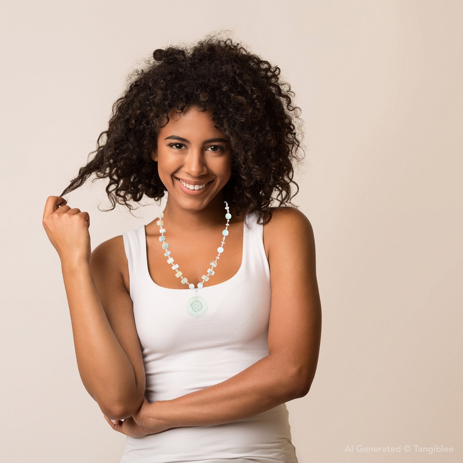 Elevate any outfit with our stunning Blue Amazonite Rosette Sterling Necklace! Crafted with genuine amazonite and sterling silver, this hand-carved rose pendant is a symbol of elegance and beauty. The necklace is adjustable from 16" to 18" with a 2" extender chain, making it perfect for any neckline. Feel confident and radiant wearing this 1.5" x 1.5" pendant. Necklace weighs 47 grams.
