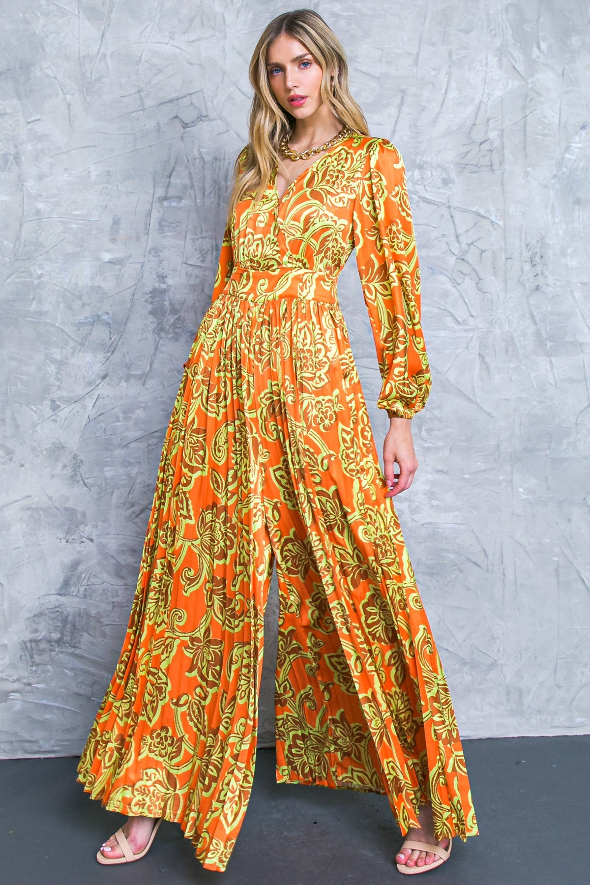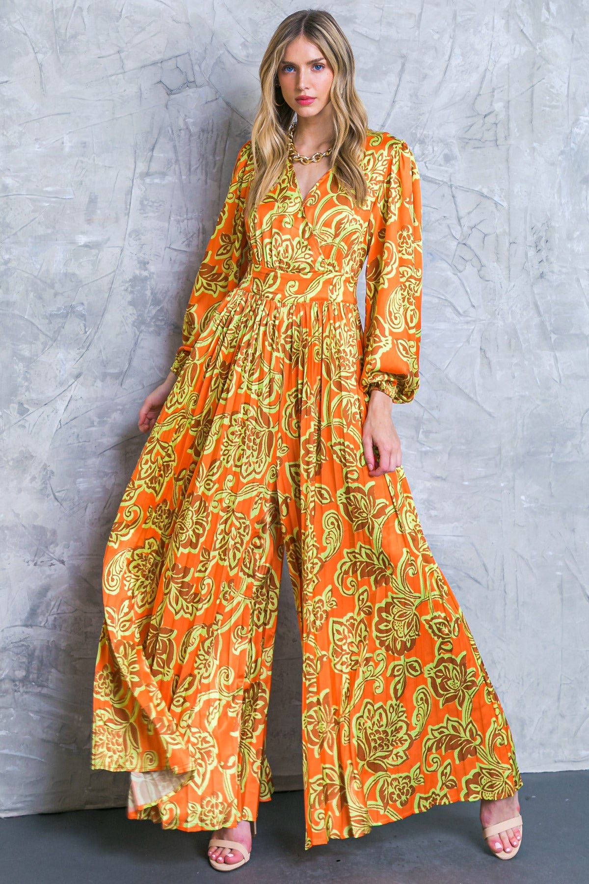 Look effortlessly chic in this Blushing with Brilliance Satin Jumpsuit. Its satin finish adds sleekness while the pleated wide leg pant and surplice neckline add a touch of sophistication. The long puff sleeves and side zipper closure make for a comfortable fit without compromising on style. Up your fashion game with this stunning one piece.