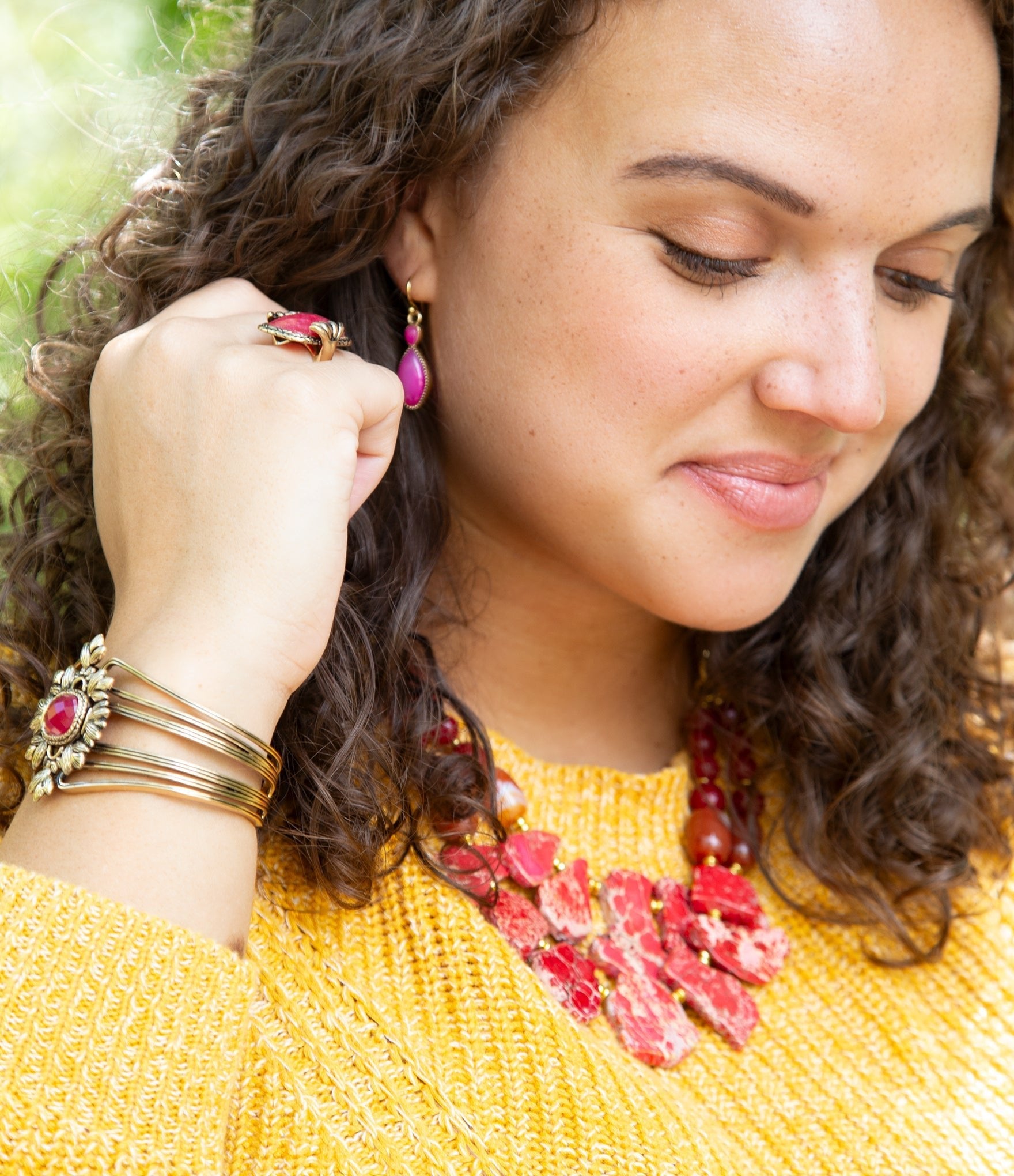 Adorn yourself with this exquisite Bordeaux Quartz and Bronze Ornate Cuff Bracelet! Crafted and finished by hand, this piece features stunning .5" x .5" faceted bordeaux quartz and a beautiful golden bronze color. It's 1.75" length is adjustable to fit most wrists. Revel in this unique, ornate design that radiates with a red and golden hue. 💎💛