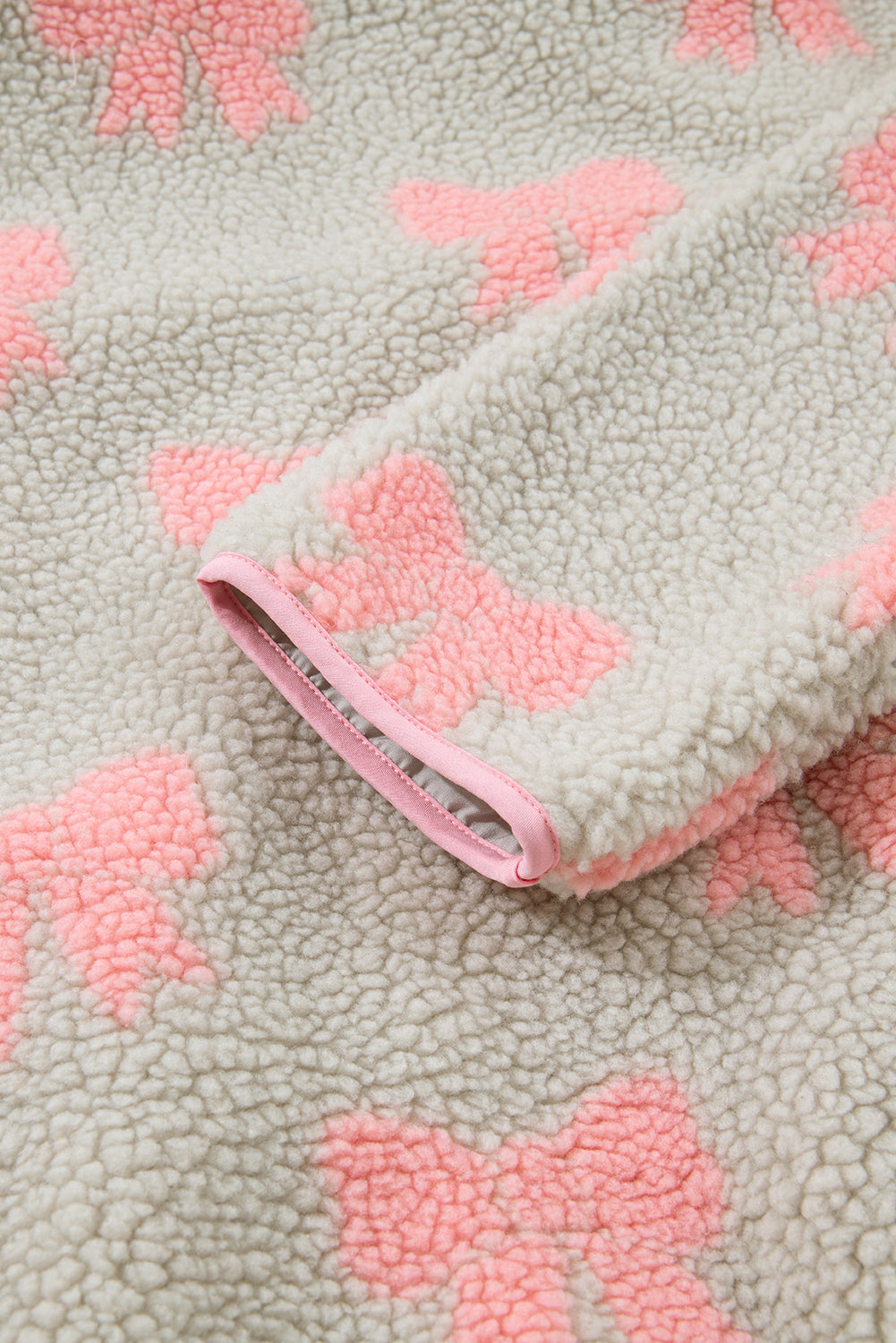 Bow Sherpa Quarter Zip Drop Shoulder Sweatshirt