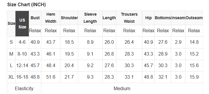 See size chart for approximate measurements.