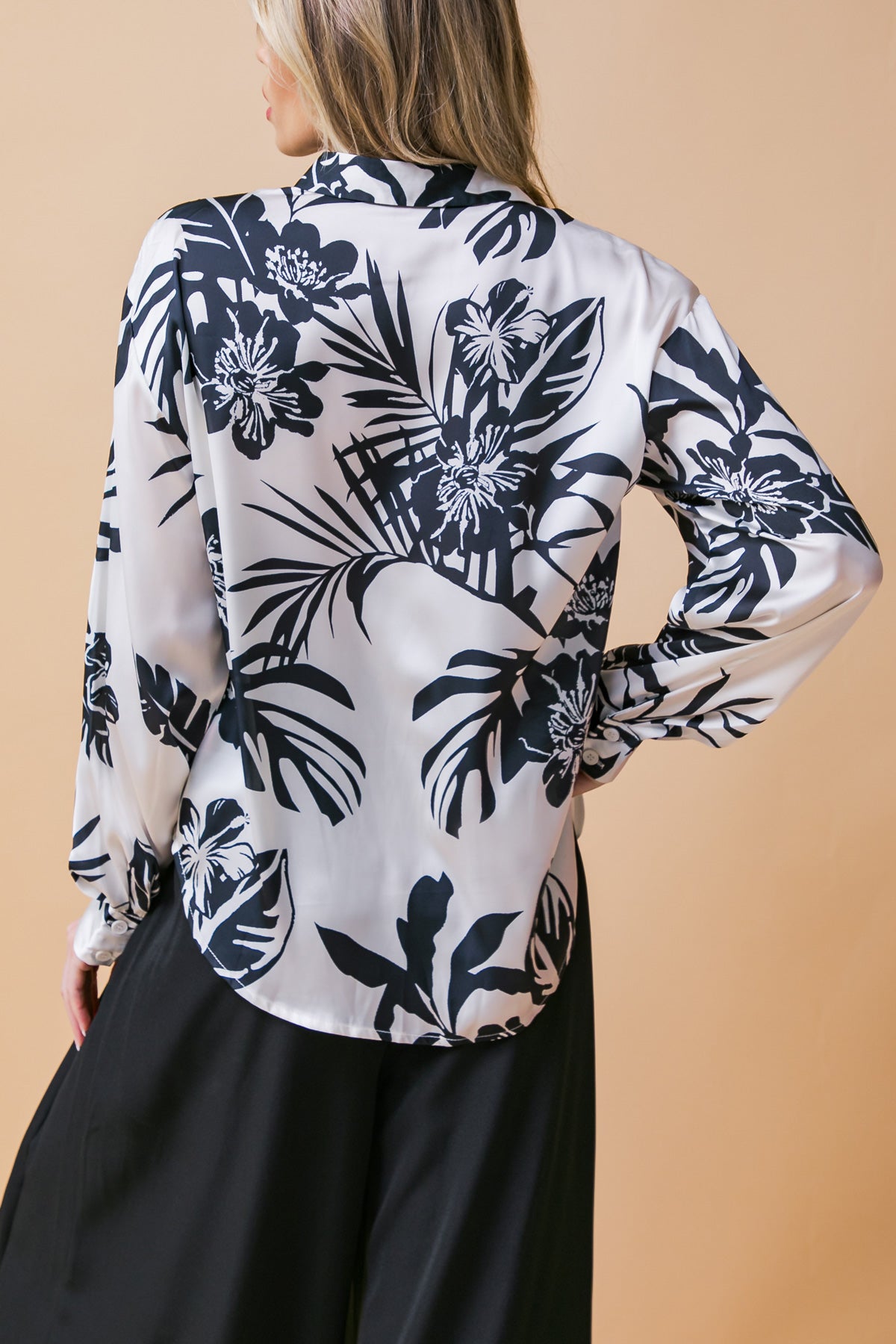 The BRIDE AND TRUE SATIN TOP offers elegant sophistication with its silky satin fabric and traditional detailing. This classic piece stands out with its shirt collar, long sleeve with cuff and button down giving you timeless style. Perfect for any special occasion.