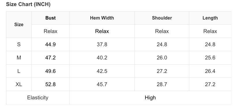 See size chart for approximate measurements