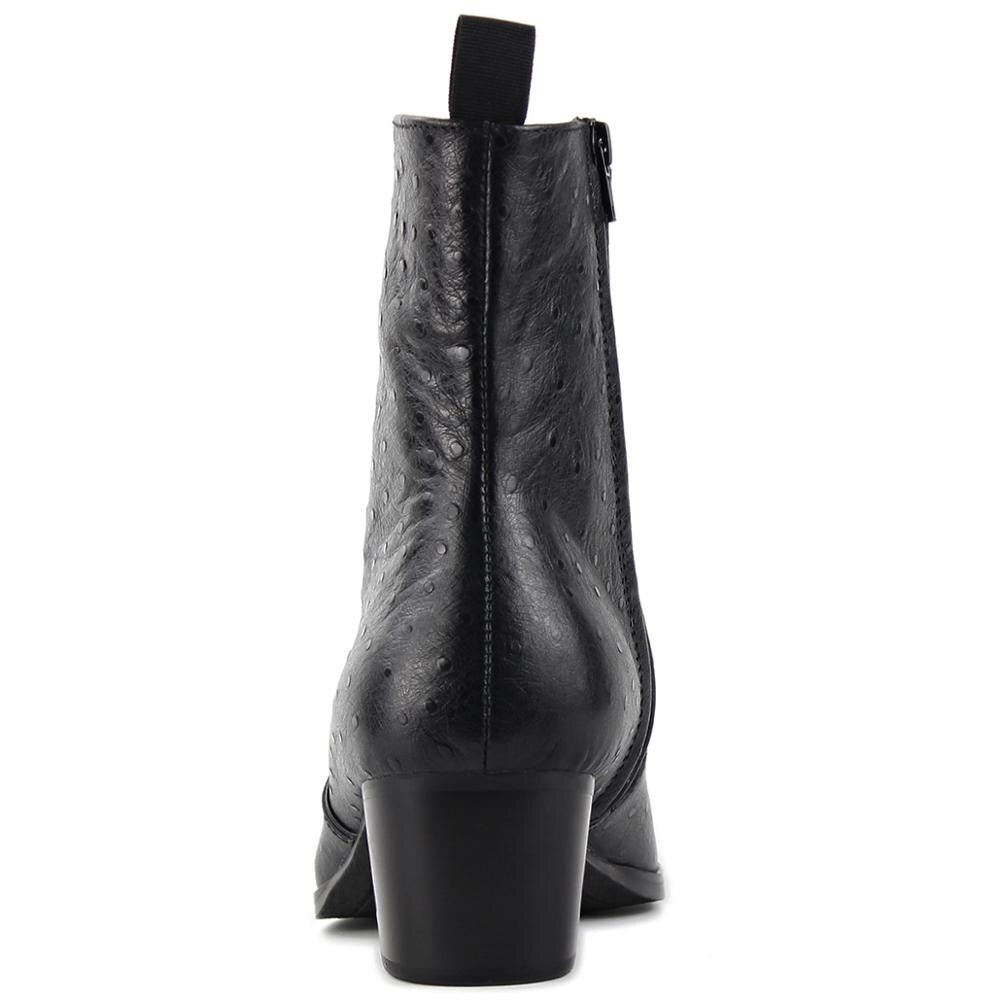 Whether you're attending a special event or simply want to showcase your individuality, our black ostrich pattern high-heeled Chelsea boots are the perfect choice. Experience the confidence and elegance you deserve.