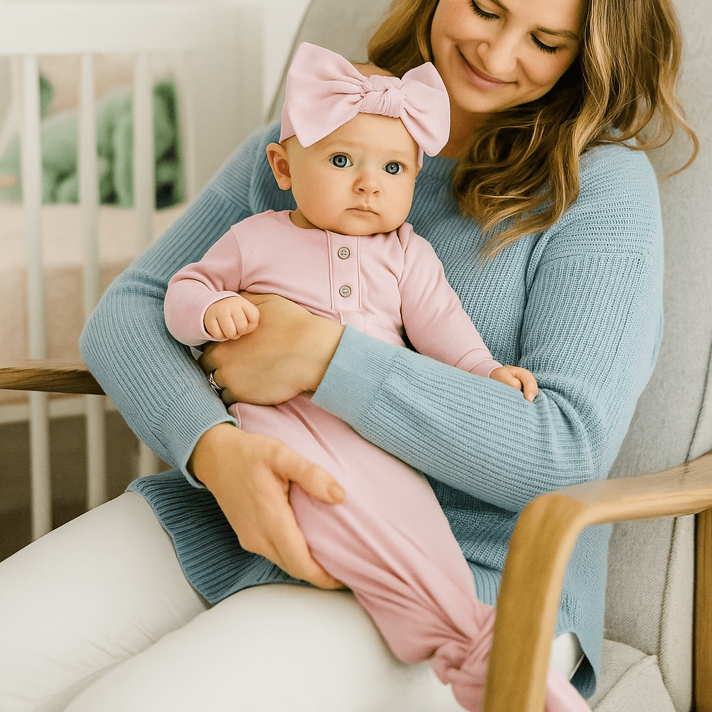 Our knotted gown is perfect for that special homecoming outfit. A close fit design for comfort and security. Finished with a deep front placket and knot closure for super easy diaper changes!