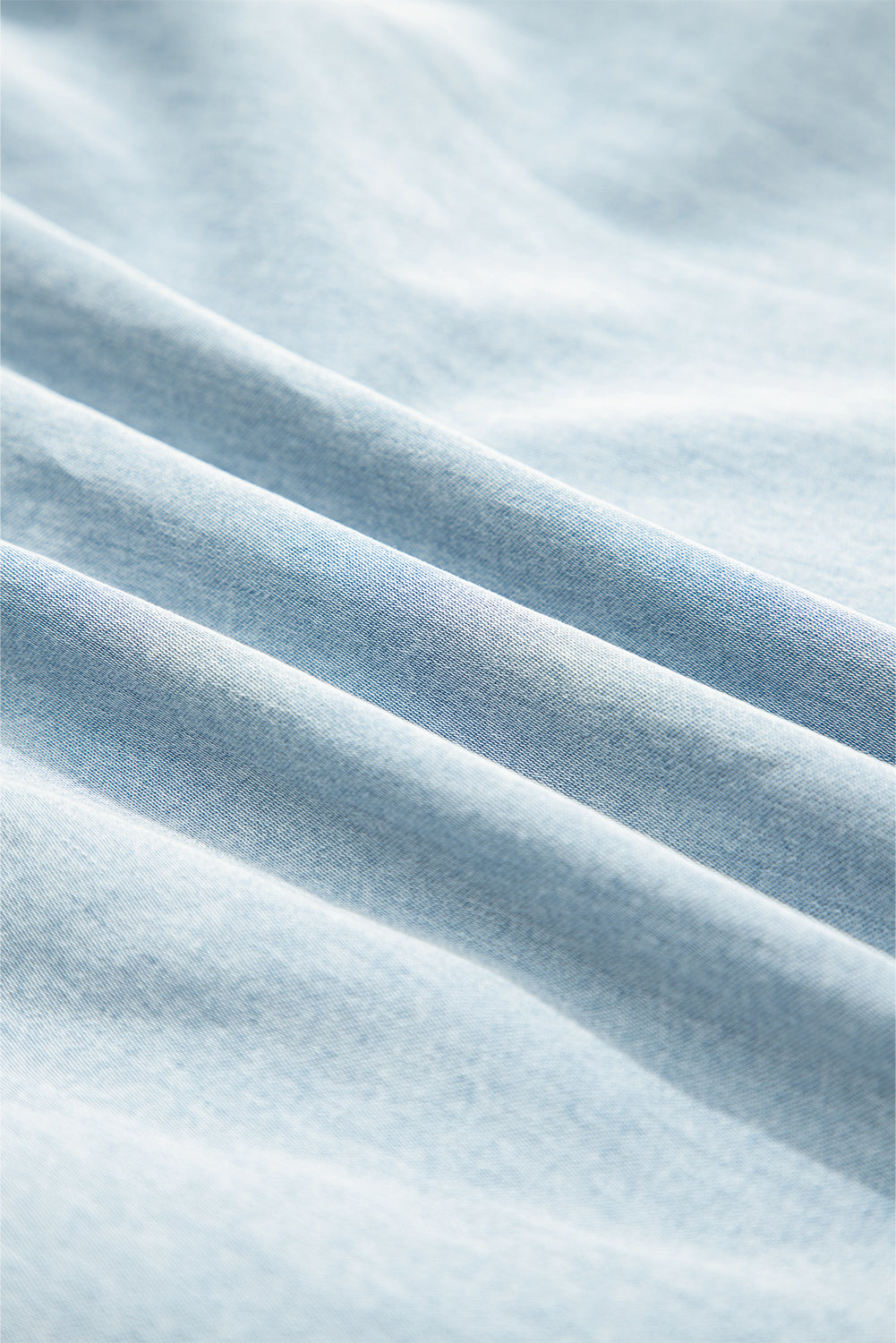 Step into sunshine with this dress! Lightweight chambray fabric dances with gentle ruffles, while the charming bow neckline adds a sweet, playful touch. Perfect for warm days, this sleeveless dress keeps you cool and effortlessly stylish for brunches, picnics, or any fun outing. Embrace playful comfort that sparks joy wherever you go! 100% Cotton
