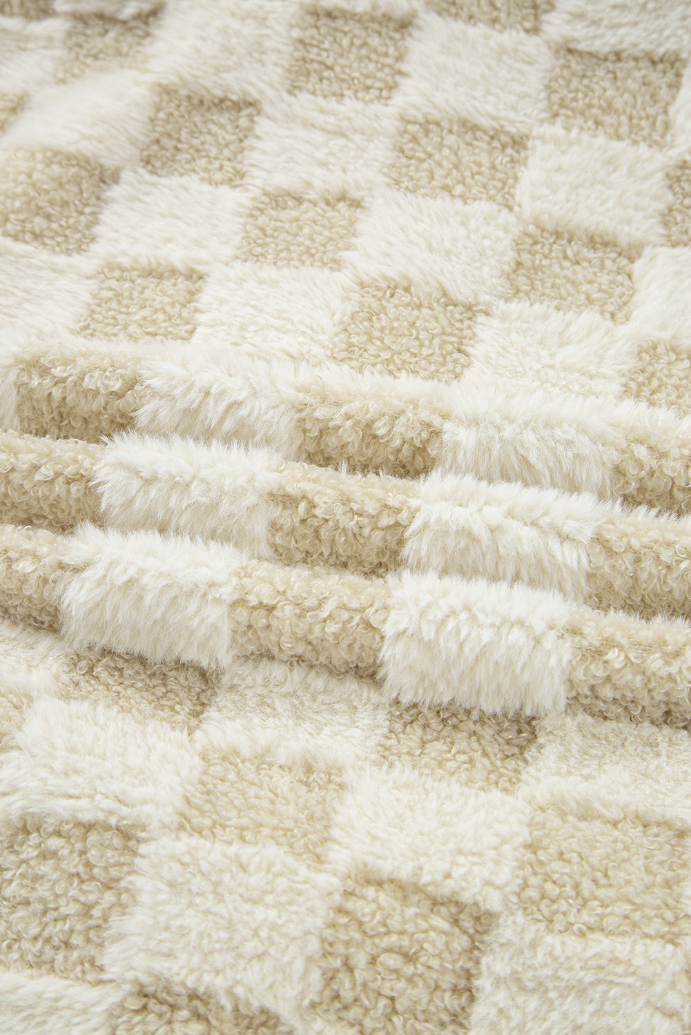 Checker Sherpa Snap Button Vest Jacket With Pockets