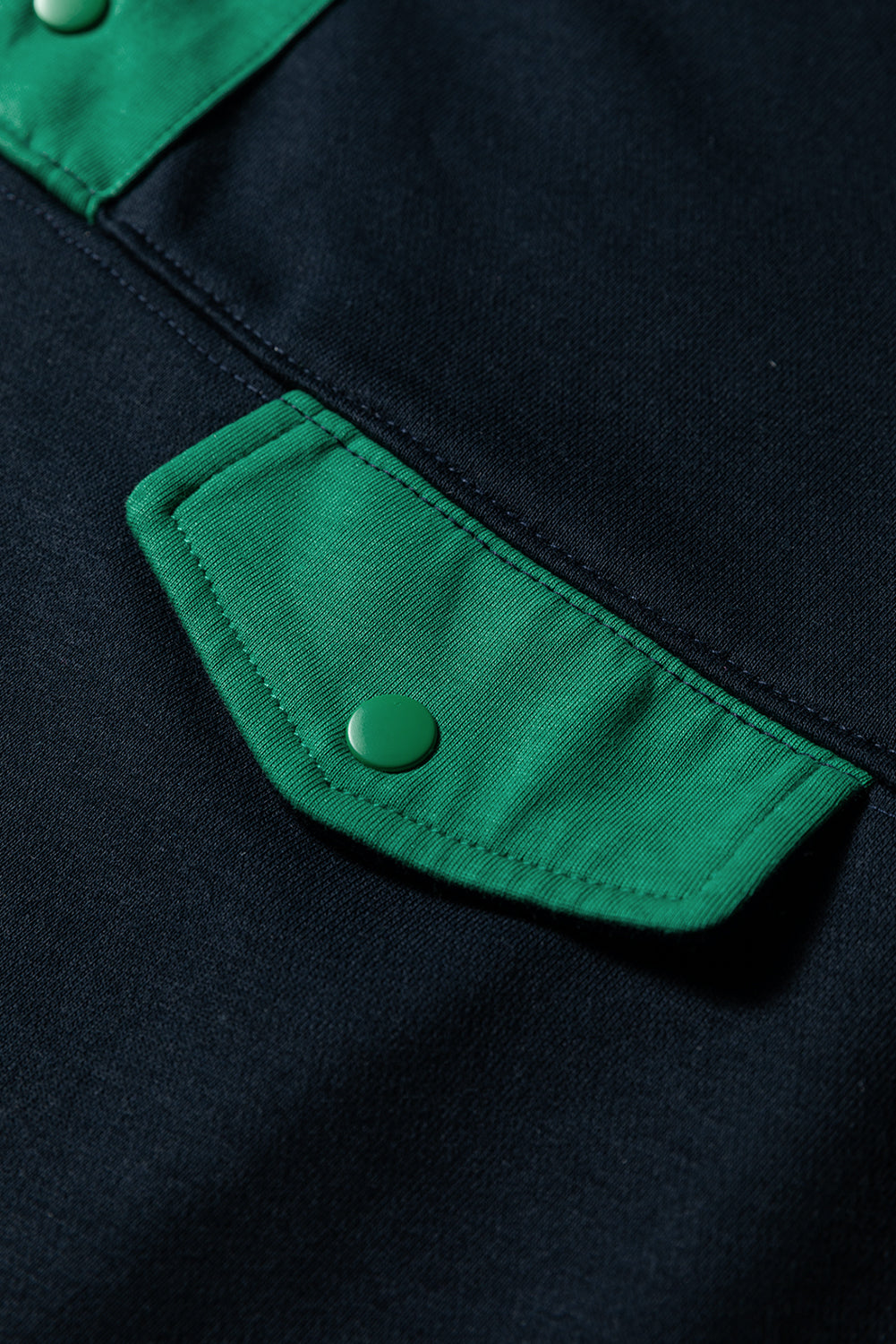 This two-piece set features a half-button pullover top paired with elastic waist shorts for effortless comfort. The patchwork design adds a modern, stylish touch, ensuring a coordinated and fashionable look. Perfect for casual wear, this long-sleeve and shorts outfit balances relaxed fit with contemporary styling, making it a versatile choice for everyday wear. Polyester/Cotton