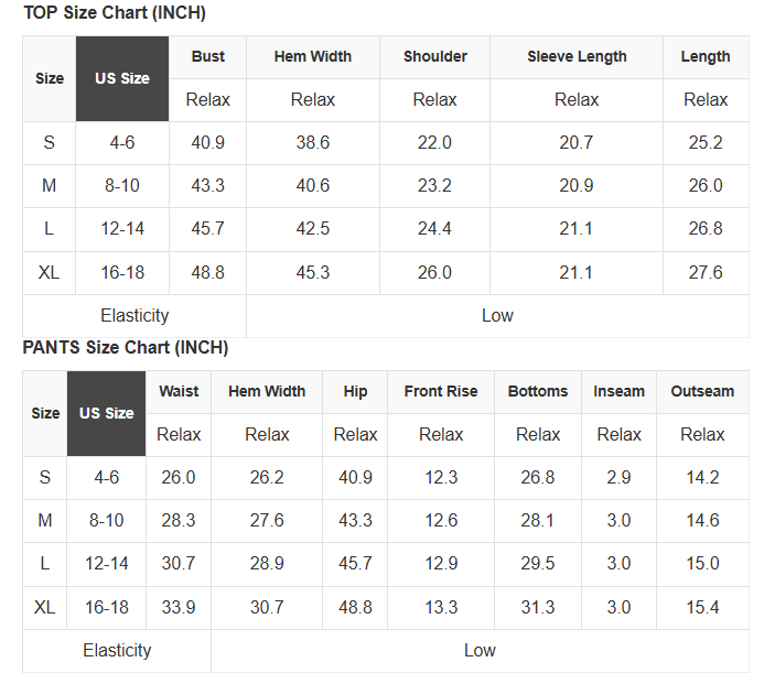 See size chart for approximate measurements.