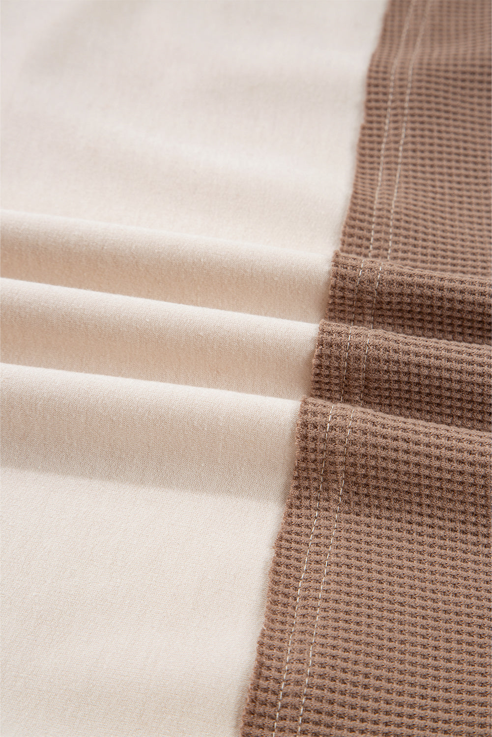 Make a bold statement with this top. Its classic Henley silhouette combined with playful colorblocking and textured waffle patchwork gives every casual look a fun twist. With a loose, comfy fit, it flatters all body shapes while keeping you effortlessly stylish. Polyester/Cotton