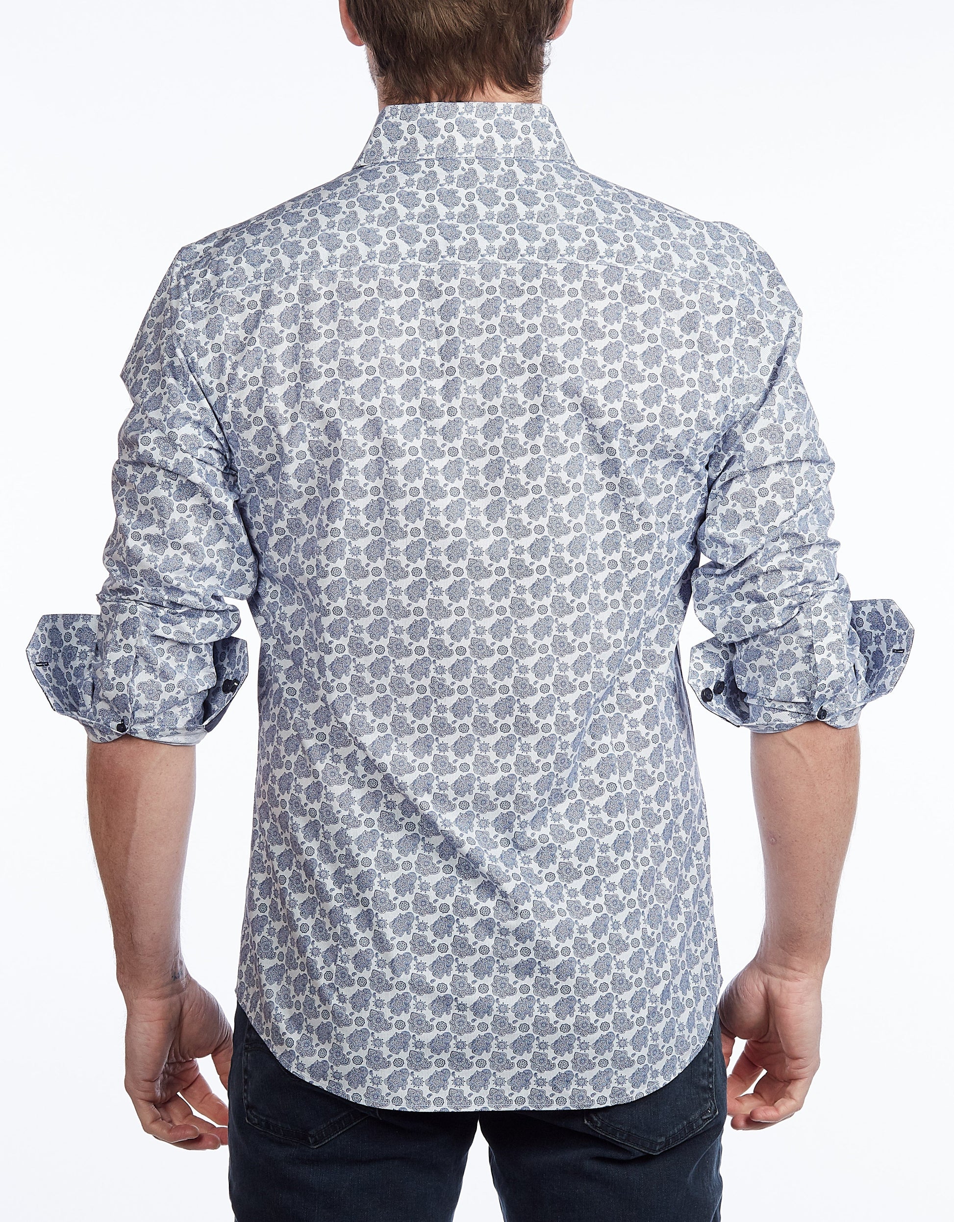 The contrast trimmings in the collar, placket and cuffs goes well with a classic business palette. Wear this shirt with jeans, blazer or a suit. For more casual look leave top button open to display the trimming of the collar and you will get a smart, yet sophisticated office look.
