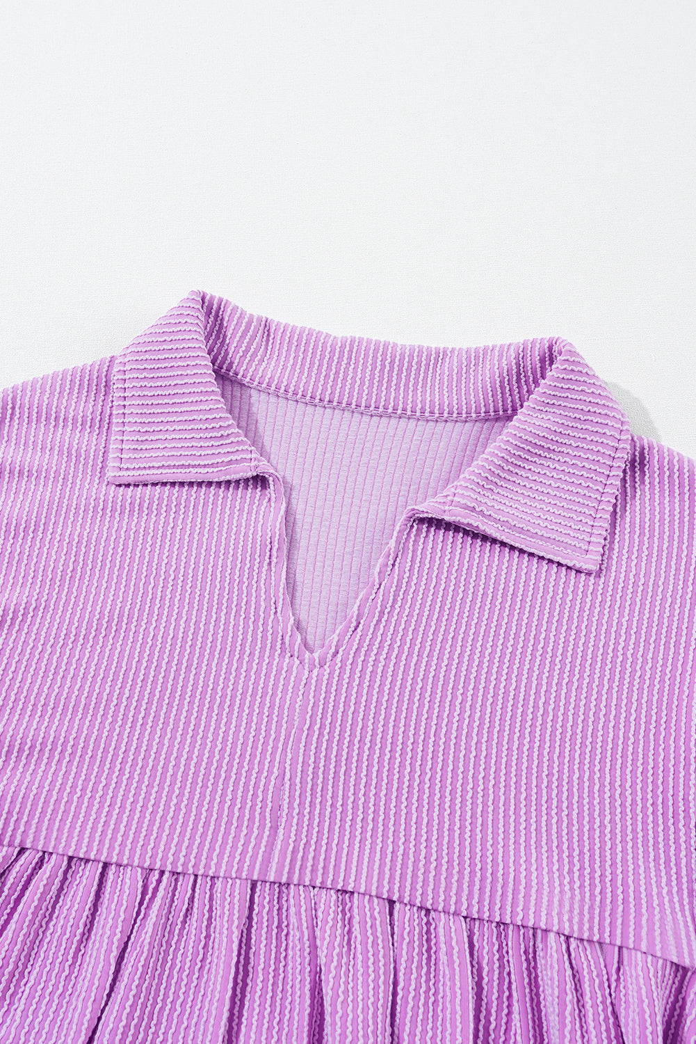 Corded V-Neck Bubble Sleeve Babydoll Blouse