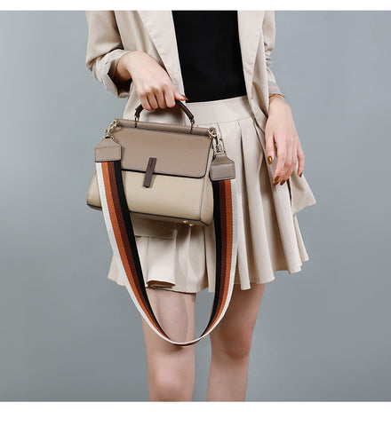 Cowhide leather tote bag shoulder purse leather crossbody strap 8853