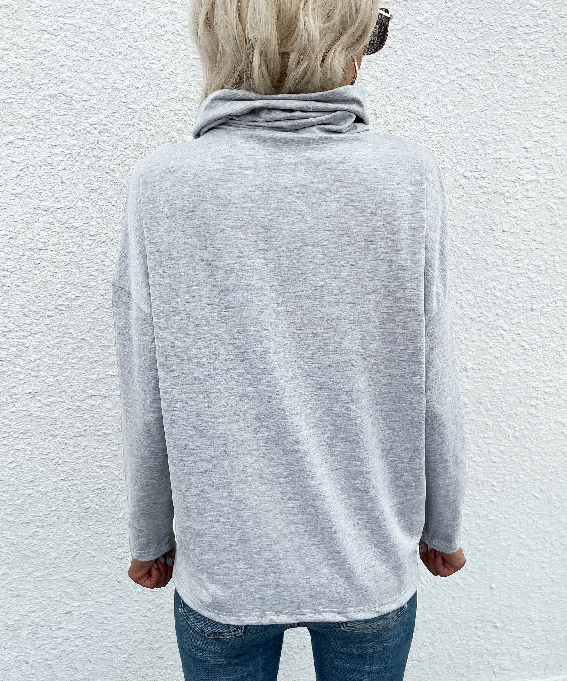 ??he Anna-Kaci sweater is detailed with a gorgeous cowl turtleneck. Features a color block design, long sleeves, and regular fit. Pair it with leather leggings and knee-high boots for a chic fall look.