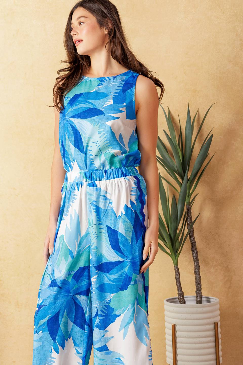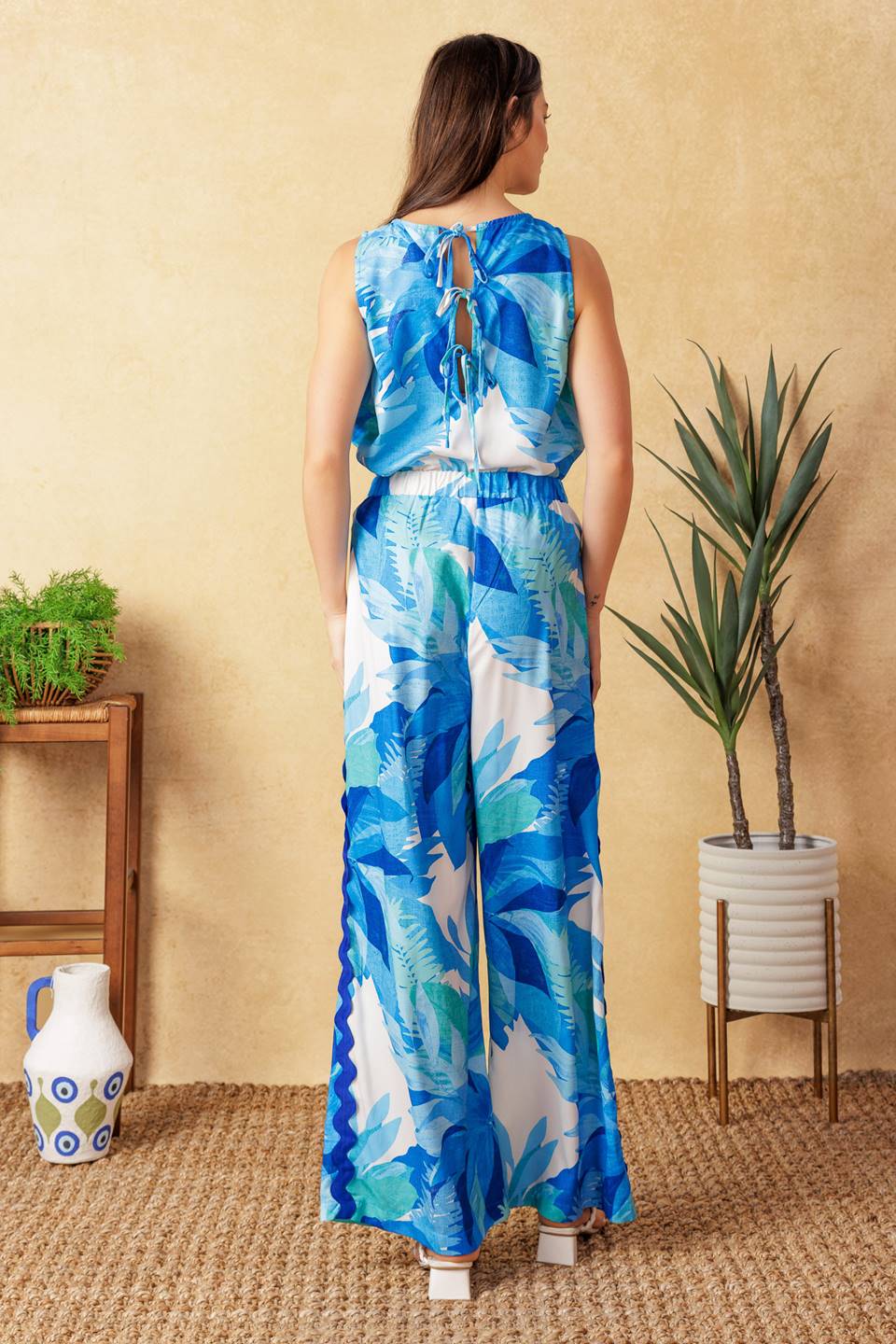 A printed woven pant with elasticized waistband and side ric rac ribbon detail. Matching top SPECIAL TREATMENT WOVEN TOP
