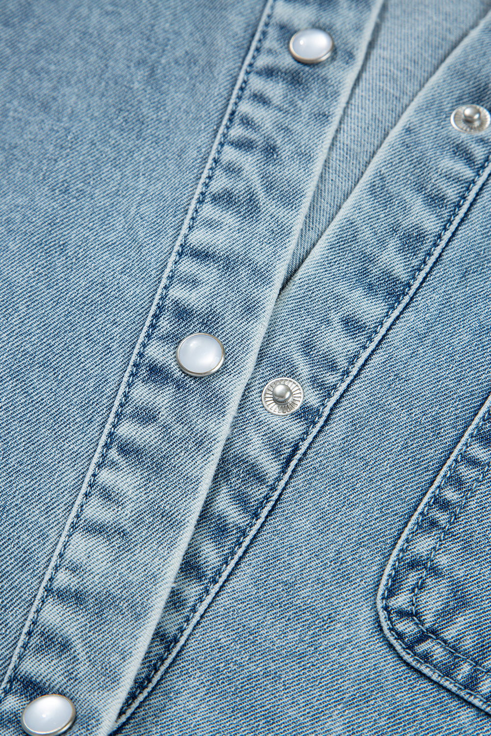 Denim Smocked Cuffs Shirt Mini Dress