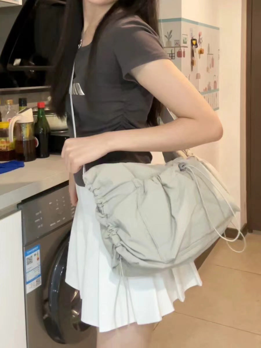 Design nylon lightweight tote bag, women's large capacity drawstring casual crossbody bag, versatile shoulder crossbody bag