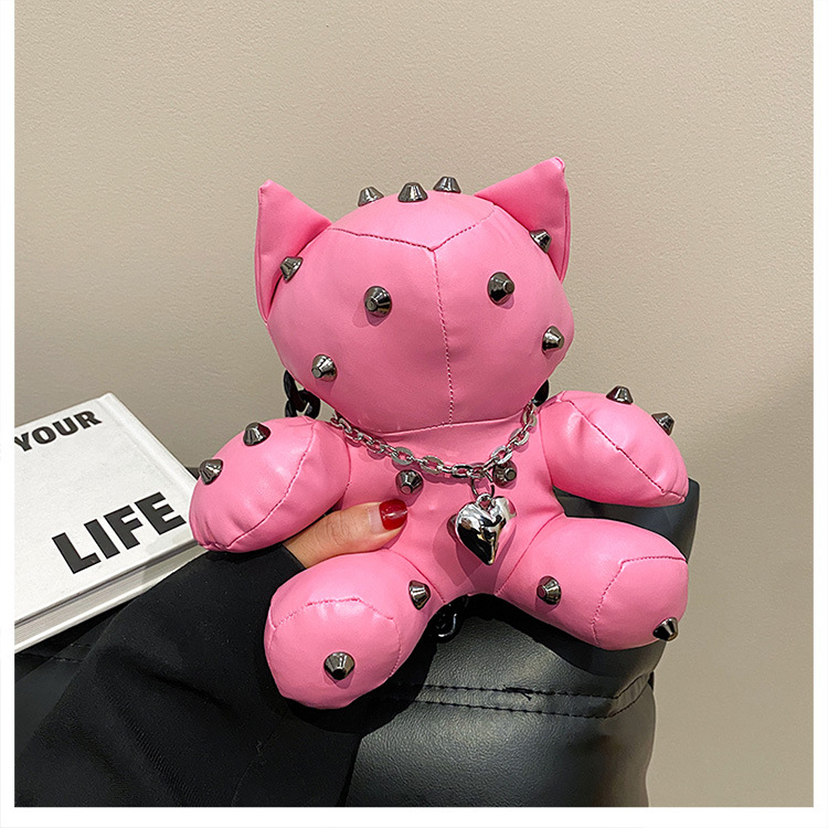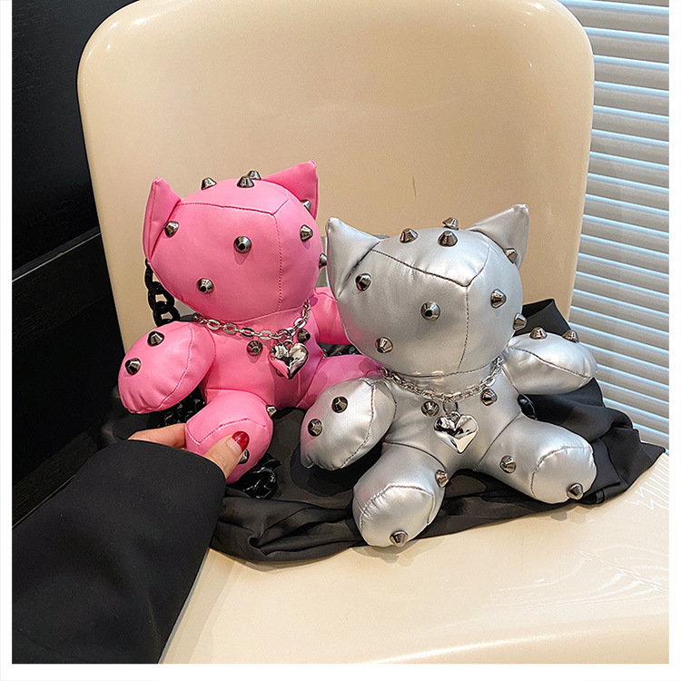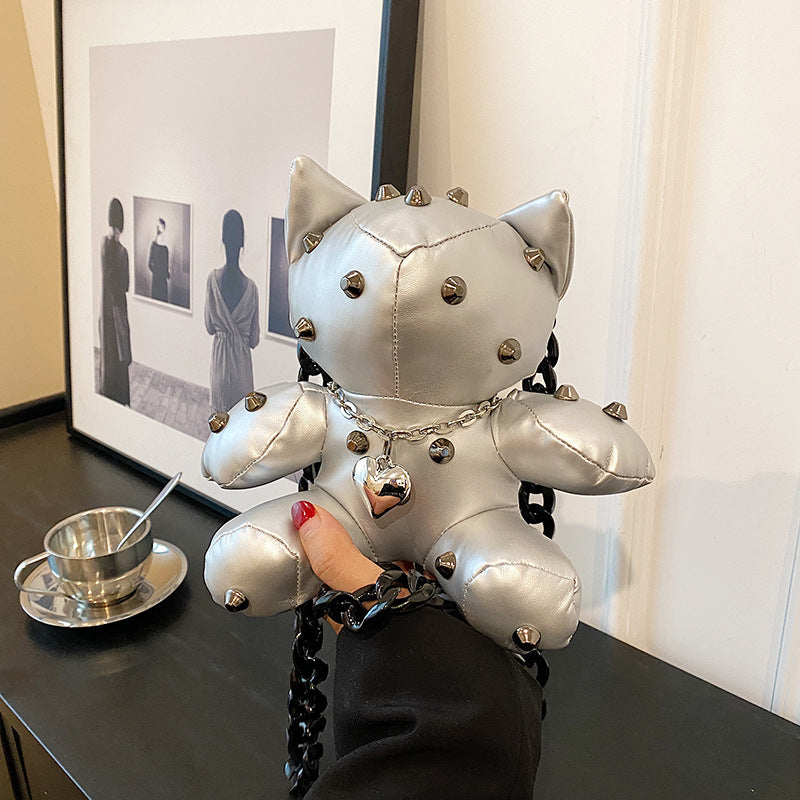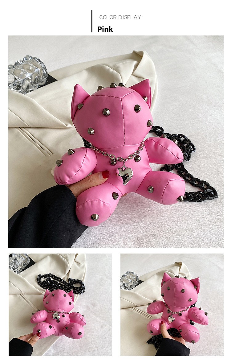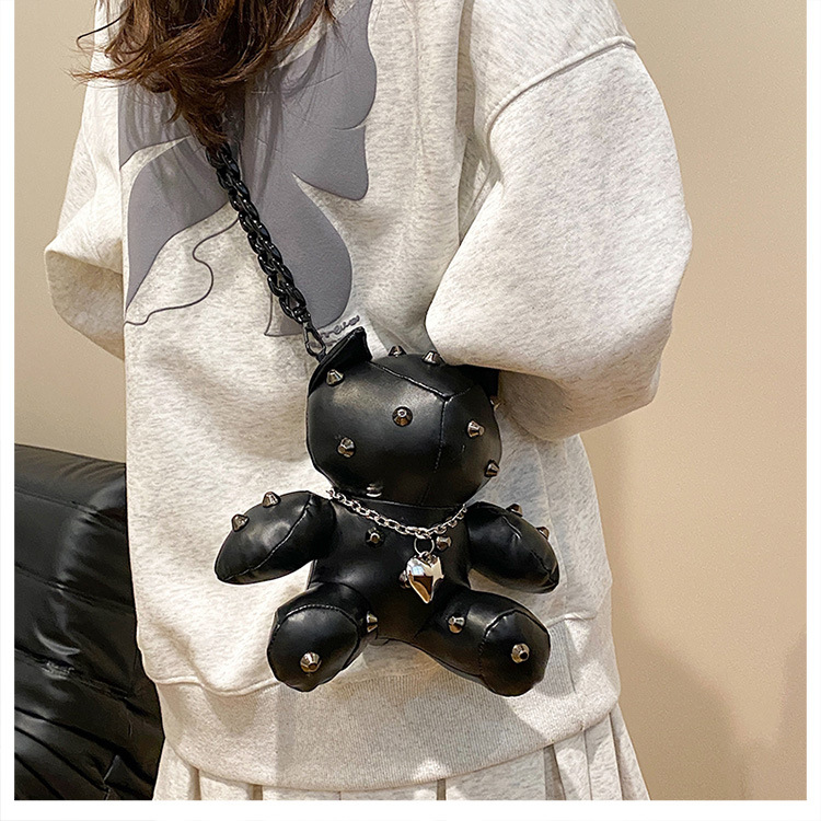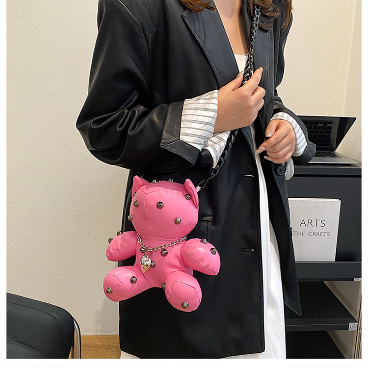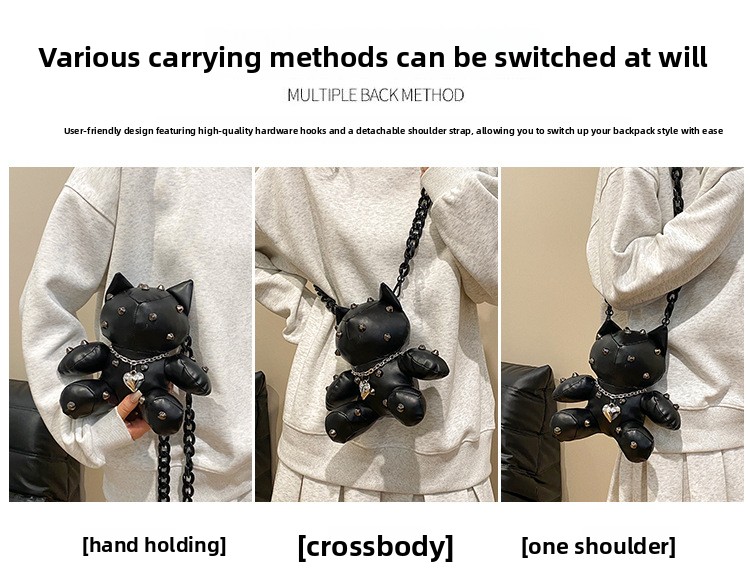 Trendy Design: Y2K style doll-shaped crossbody bag with cartoon charm.