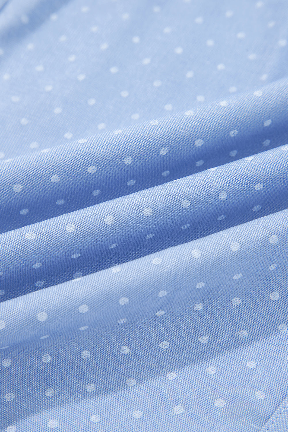 Add a touch of fun to your wardrobe with this blouse. Featuring a charming dotted pattern and delicate lace trim, it blends classic denim with playful details. The collared design keeps it polished while the patchwork style adds a unique twist—perfect for those who love mixing casual with cute. Polyester/Viscose