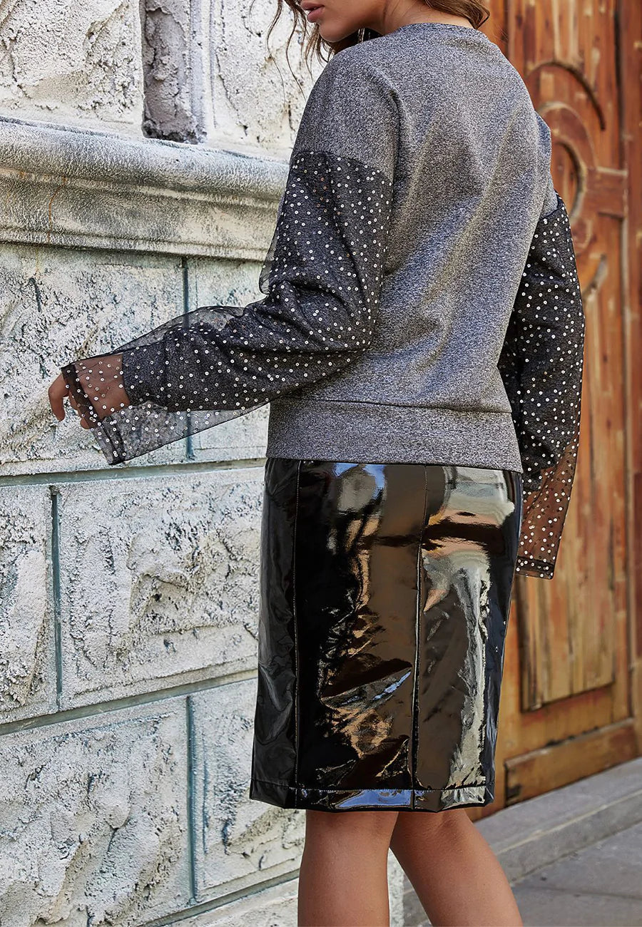 ??he Anna-Kaci sweater is detailed with a cool double layer tulle sleeve design. Features a crew neck line, drop shoulder, and regular fit. Pair it with a leather skirt and black boots for a chic look.