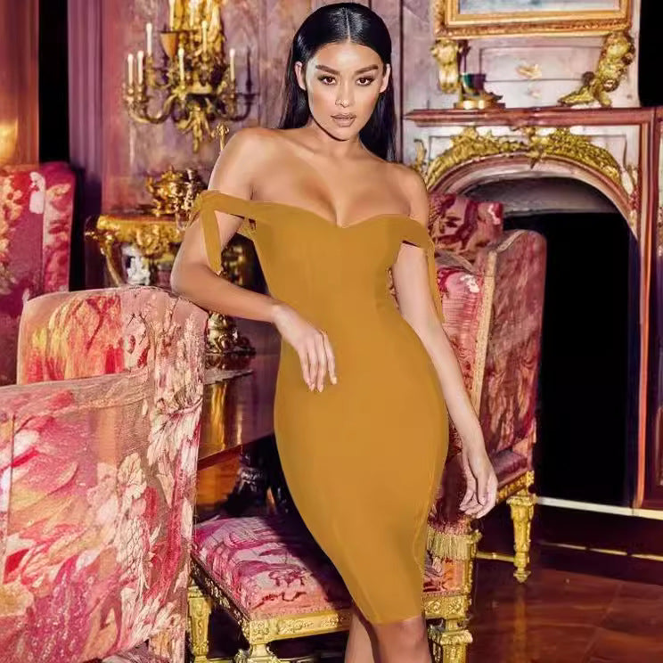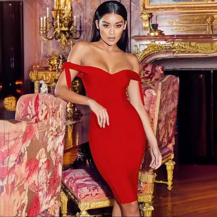 Trendy Elements: High waist, mid-length skirt, and one-word collar for a fashionable appeal.