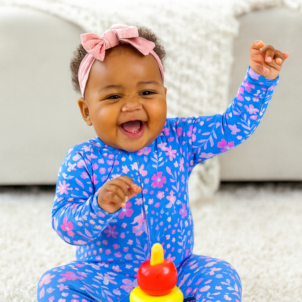 Ask and you shall receive. This yummy footie is equipped with a smooth 2-way zipper, silicone grips on the foot pads and fold-over handcuffs. Plus our silky-soft fabric hugs in all the right places to show off those baby curves.