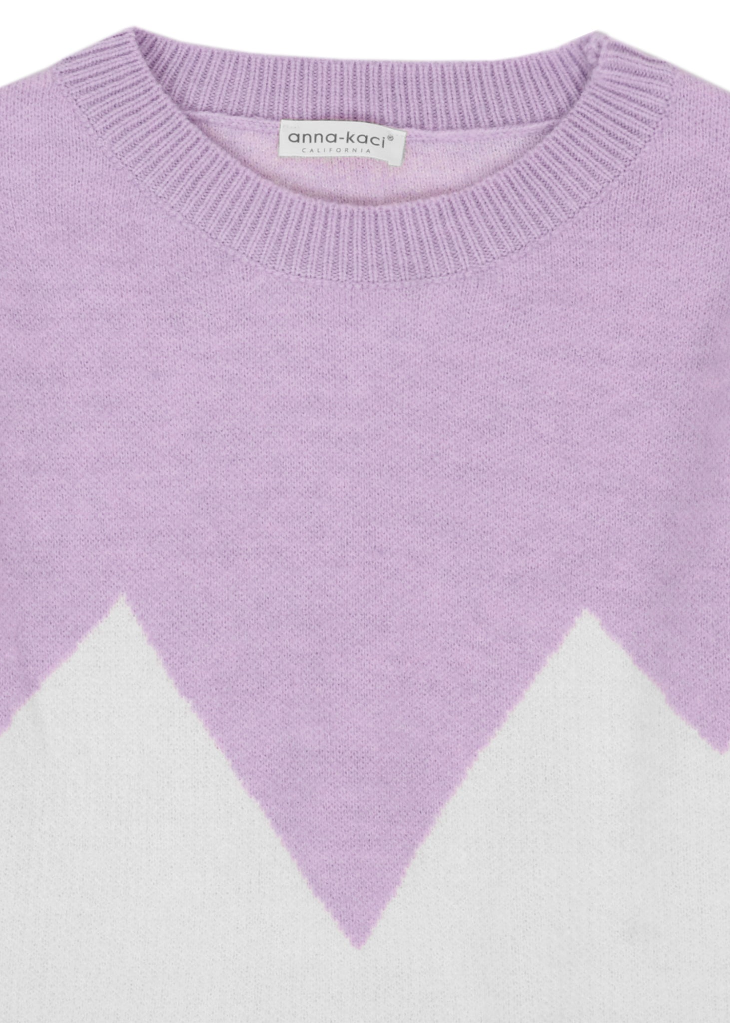 The Anna-Kaci sweater is detailed with a bold contrasting color block design that plays with asymmetrical diagonal lines. Features a round neck line, drop shoulder, long sleeves, and a loose fit. Pair it with flare-leg jeans for a comfortable outdoor look.