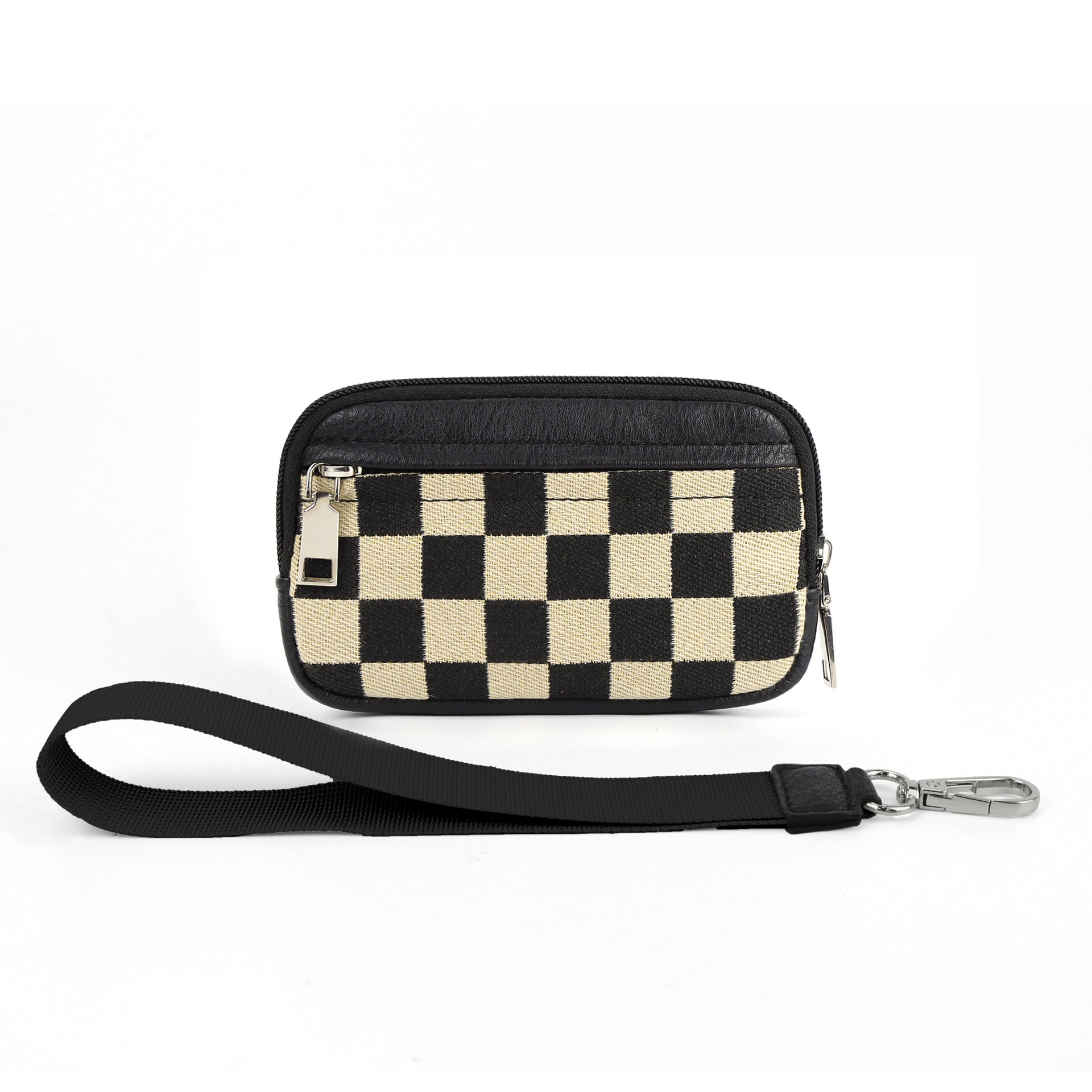 Durable Chessboard PVC Card Bag – Portable Wrist Bag for Bank Card & Change Storage Pouch