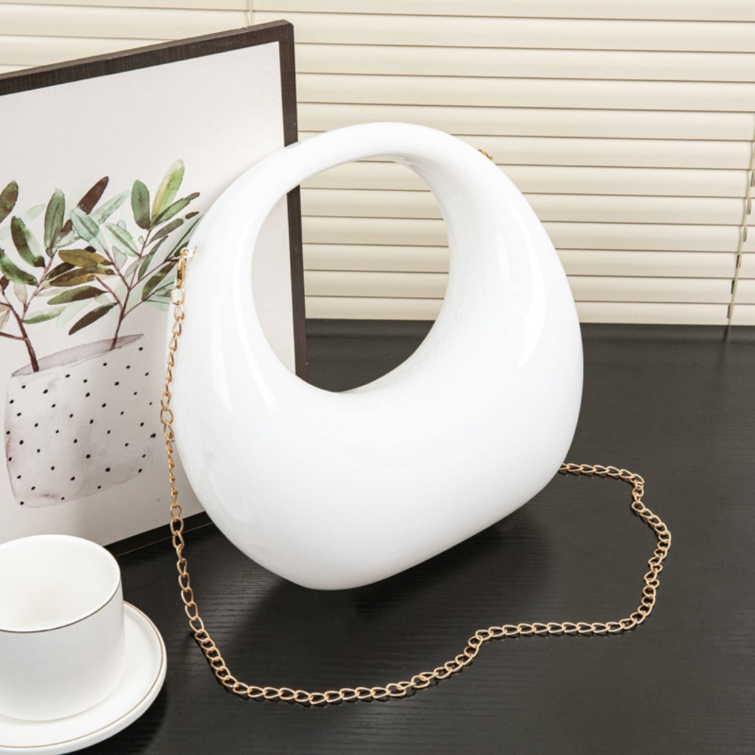 Discover the ultimate accessory for every occasion with the Elegant Crescent Moon Bag. Designed to complement both gold and silver aesthetics, this dinner bag is perfect for proms, parties, and weddings. Its acrylic material with crystal detailing ensures durability and luxury, while the compact yet functional design holds all your essentials. Whether you're attending a formal dinner or celebrating a special day, this party purse will elevate your look with its sophisticated charm. Ideal as a gift, this clutch promises to be a cherished addition to any wardrobe. Elevate your style and make a statement with the Crescent Moon Bag today!