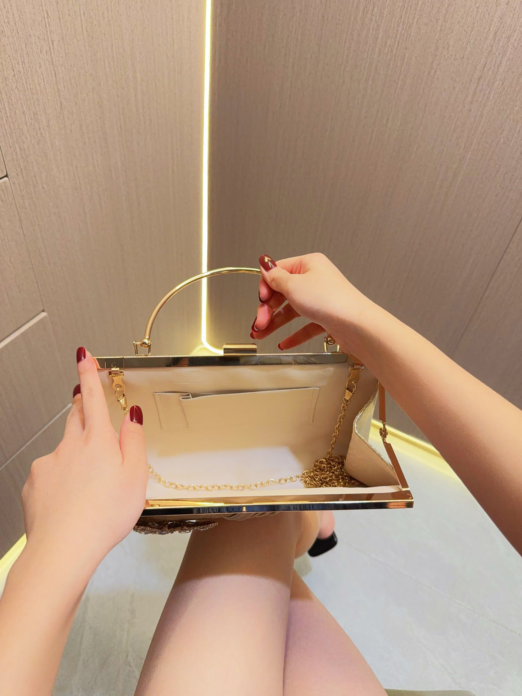 This champagne clutch is made of exquisite satin pleated flat stitching matte, and the metal frame gold bracelet is very atmospheric