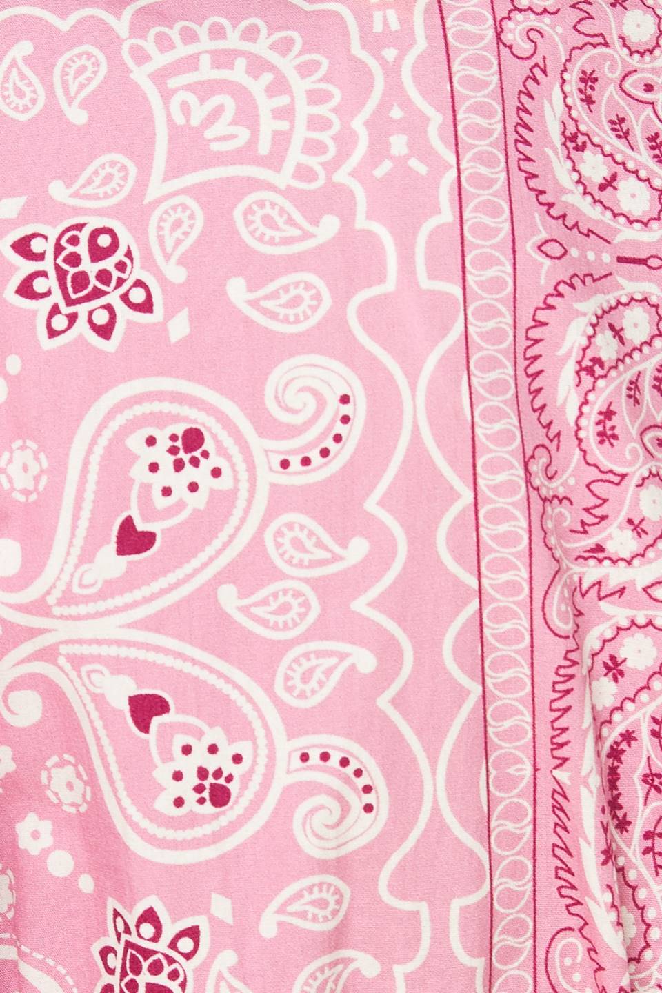 This woven mini dress boasts a printed design with a V neckline, short puff sleeves, a wide waistband, a full skirt and a convenient back zipper closure.
