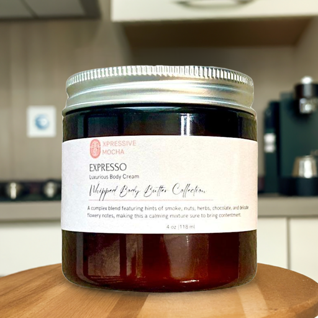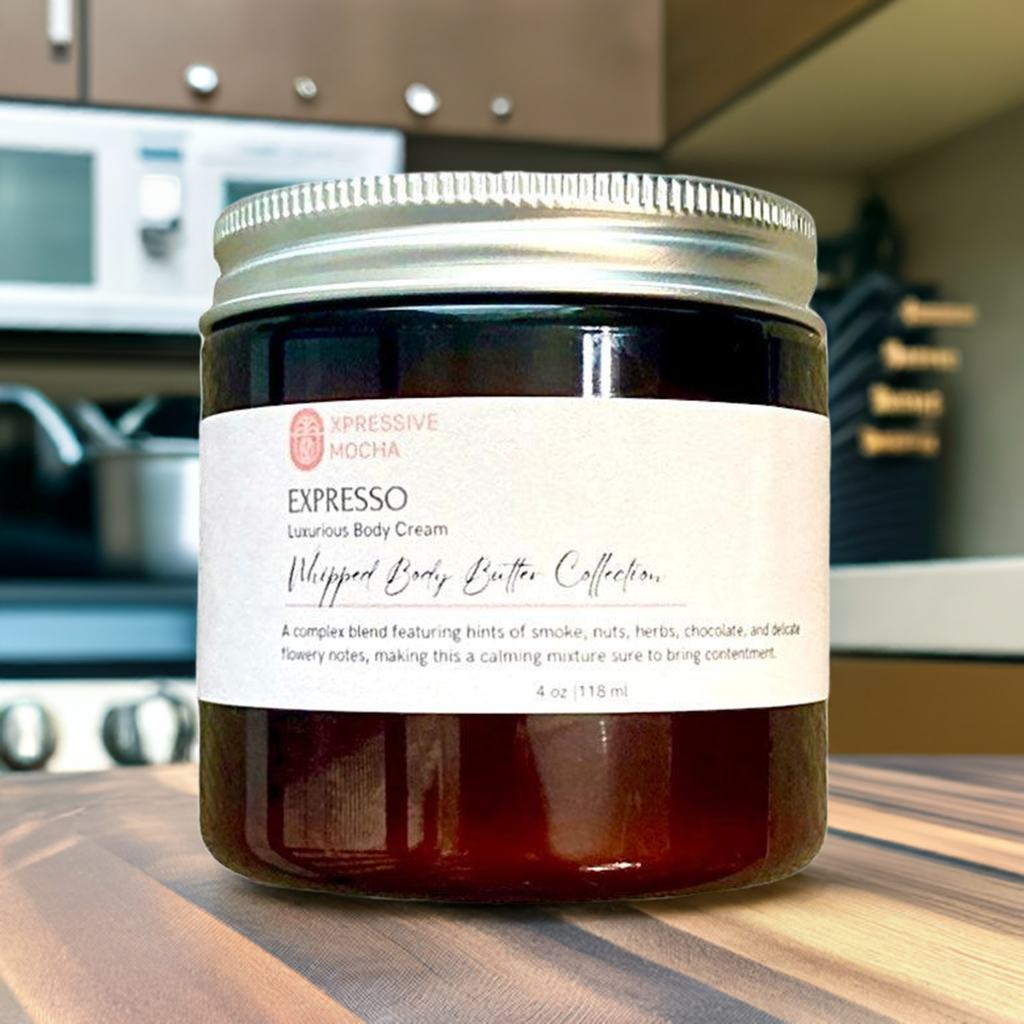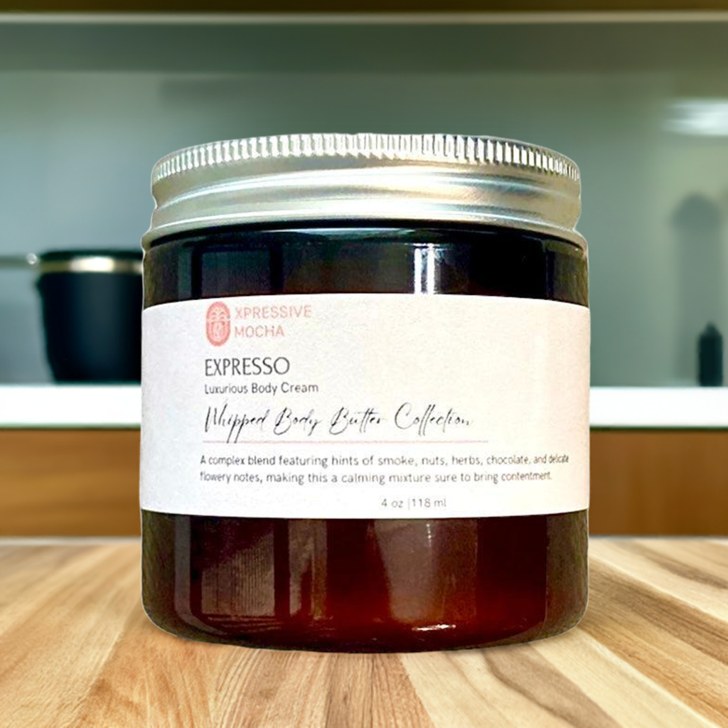 Ingredients: Shea Butter, Mango Butter, Coffee Oil, Sunflower Oil, Sweet Almond Oil, Olive oil, Glycerin ( Vegetable), Jojoba Oil, Cocoa Powder, Peppermint Oil, Arrowroot Powder and Phthalate-free fragrance.