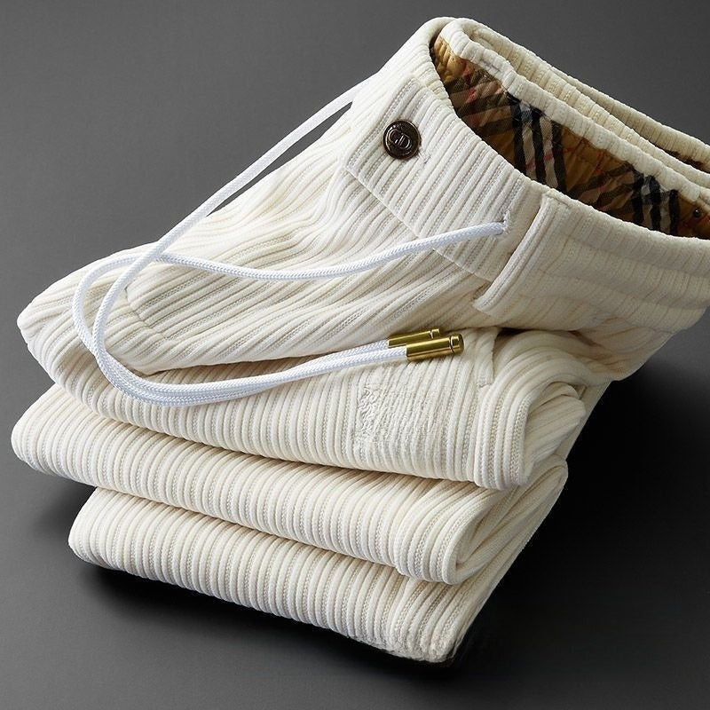 Fashionable Design: Trendy corduroy pants with stylish embroidery details.
