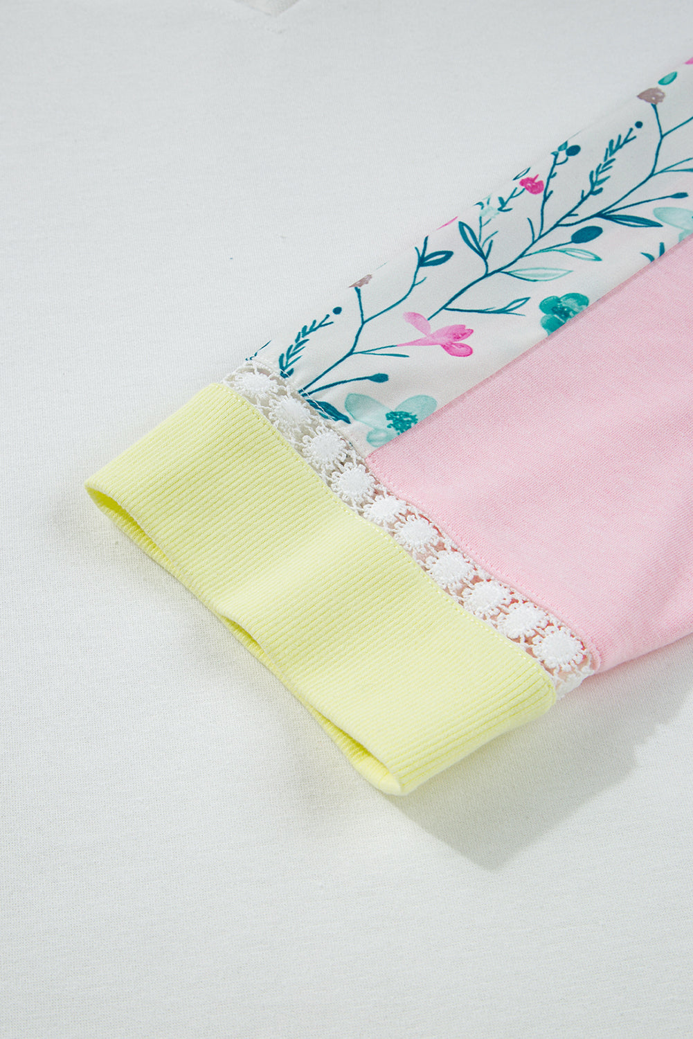 Floral Colorblock Patchwork Chest Pocket Long Sleeve Top