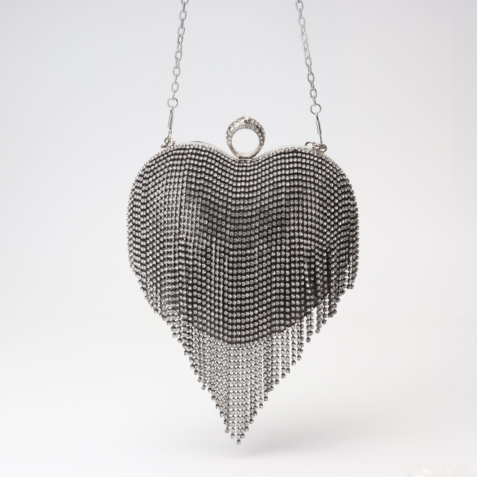 Discover timeless elegance with the Fringed Rhinestone Bag – a must-have accessory for every special occasion. Designed with a heart shape, this Dinner Bag combines sophistication with a hint of sparkle, thanks to its fringed rhinestone embellishments. Perfect for proms, birthday parties, weddings, and more, this Clutch Purse Party offers both style and functionality. The detachable crossbody chain allows for versatile wear, while the luxurious interior ensures your items stay safe and organized. Elevate your look with this Prom Bag and make a lasting impression at any event. Treat yourself or someone special with this stunning Wedding Purse Crossbody Chain today!
