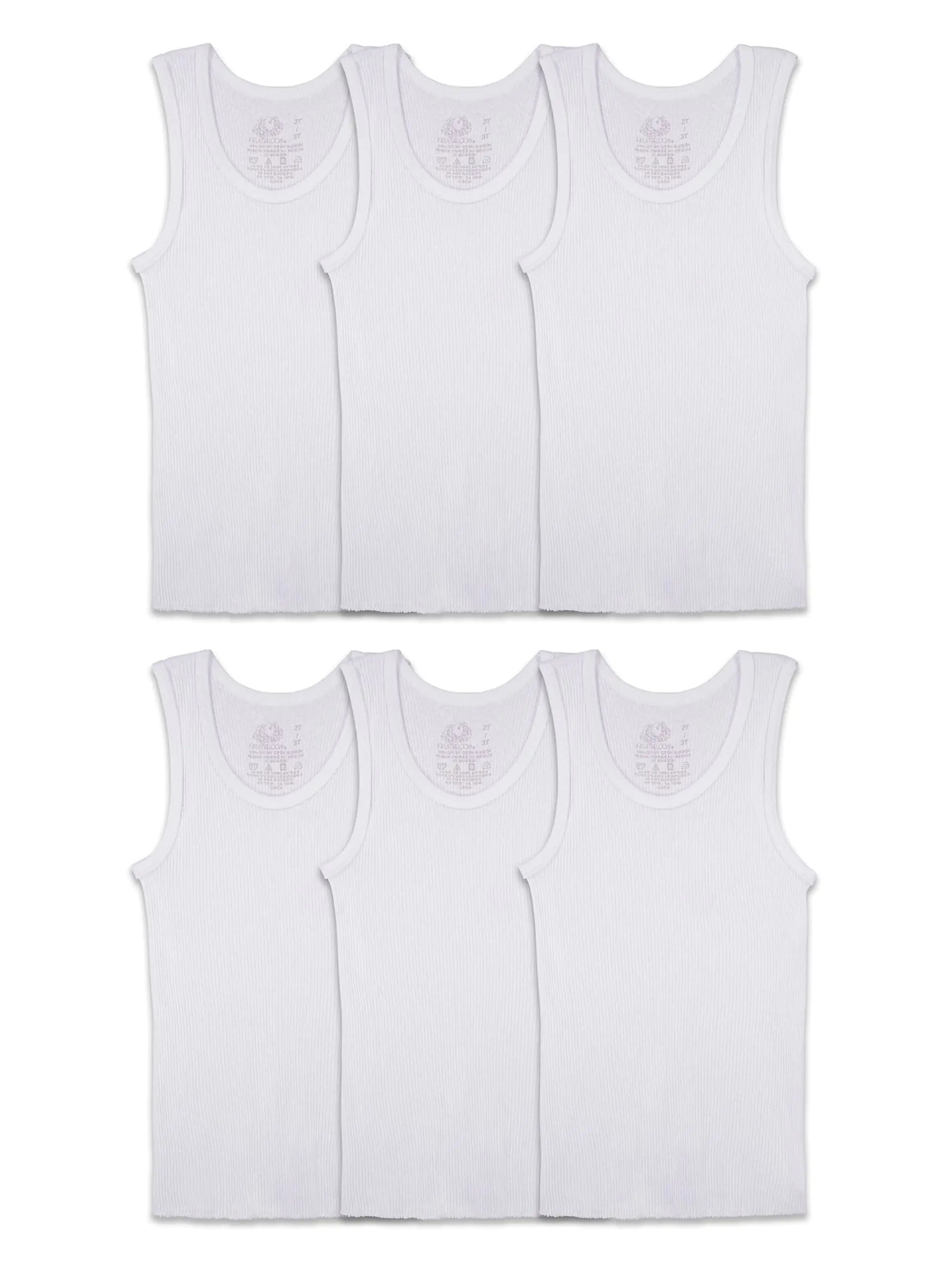 Fruit of the Loom Boys' Cotton White T Shirt 4-5T Tank - Toddler - 6 Pack - White - # BOAA11510012