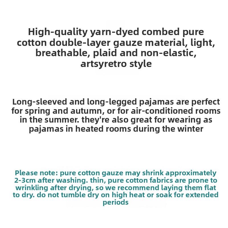 Double-layer Gauze: Made with breathable double-layer gauze fabric for enhanced comfort.