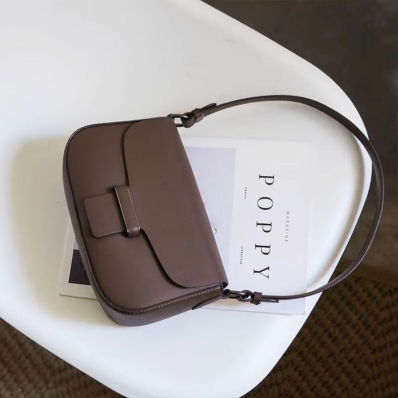 Genuine leather small shoulder bag for women trendy classic style hobo