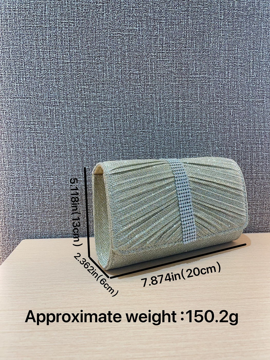 This silver glitter evening bag exudes elegance and is perfect for special occasions and formal events.