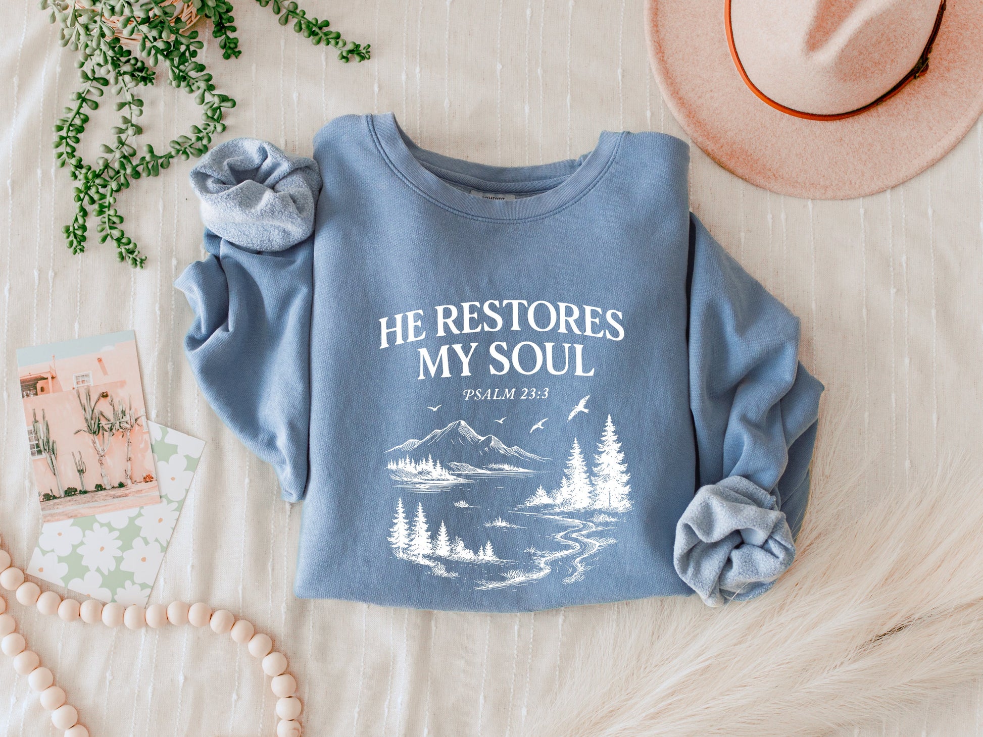 He Restores My Soul Psalm Bible Christian Garment Dyed Comfort Colors Sweatshirt