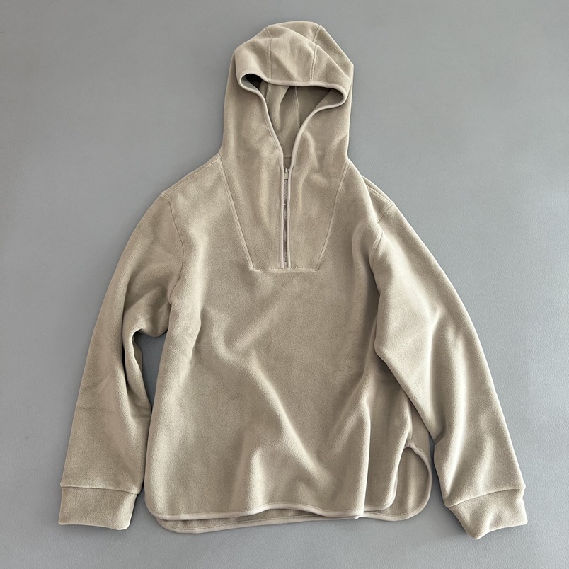 - Style: Hooded, long sleeves, pullover with half-zipper placket.