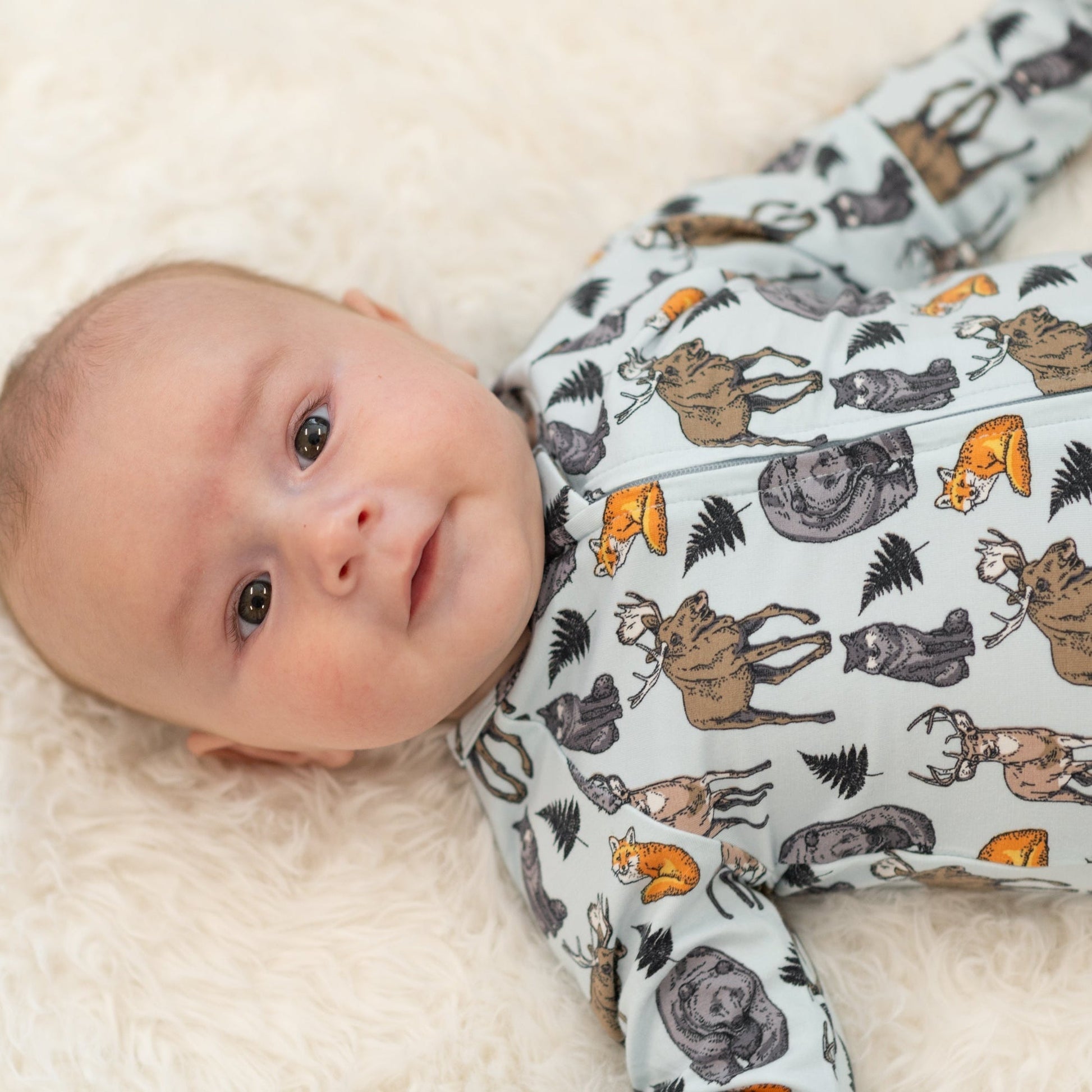Ask and you shall receive. This yummy footie is equipped with a smooth 2-way zipper, silicone grips on the foot pads and fold-over handcuffs. Plus our silky-soft fabric hugs in all the right places to show off those baby curves.
